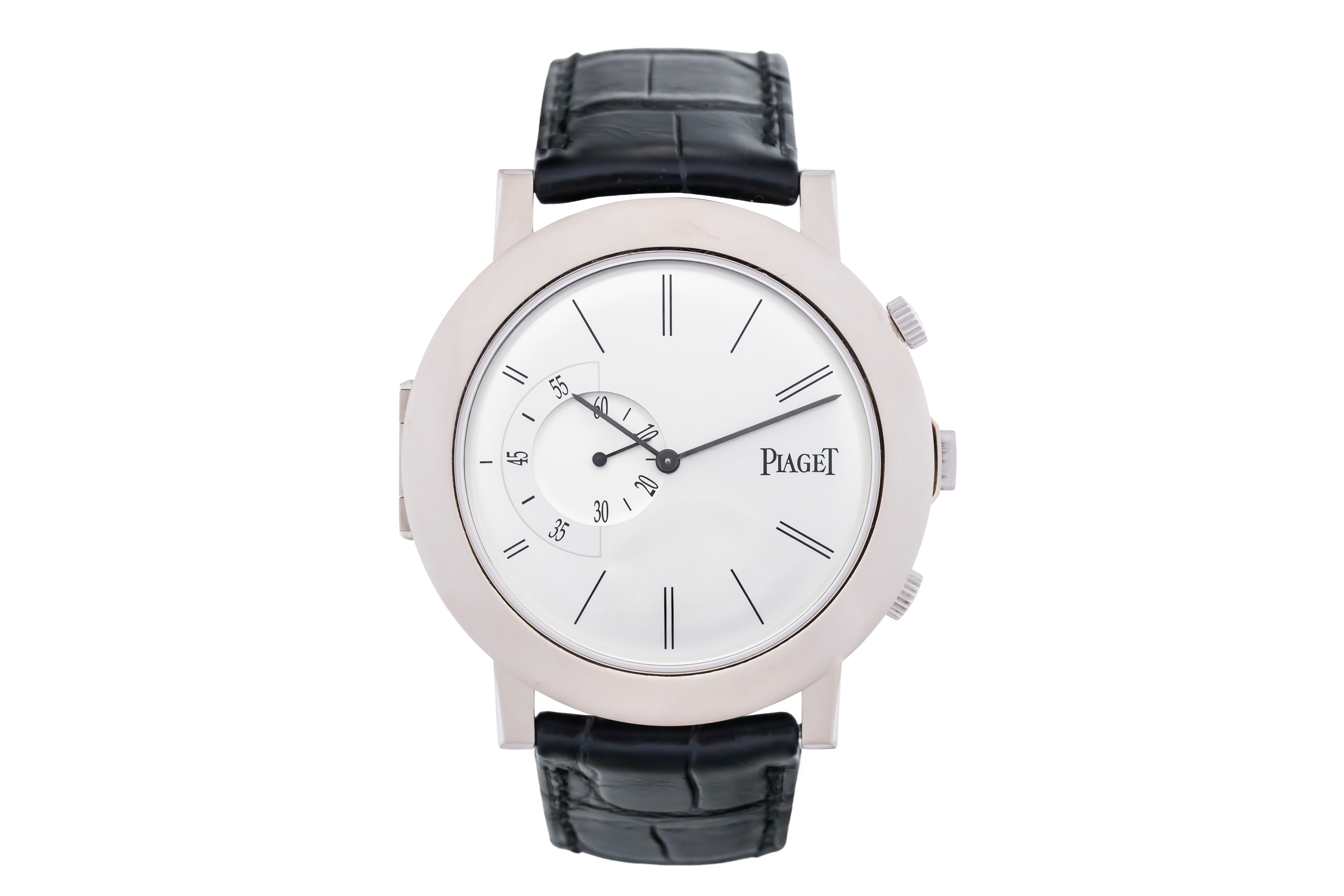 This Piaget Altiplano G0A32152 has a silver dial and a leather strap. This Piaget has undergone a thorough inspection of water resistance, accuracy, functionality and condition to determine the level of reconditioning required to meet our strict standards. It has also been referenced against technical documents and manufacturer records where available to ensure authenticity and a clean history. All our watches have a 24-month warranty for your peace of mind.