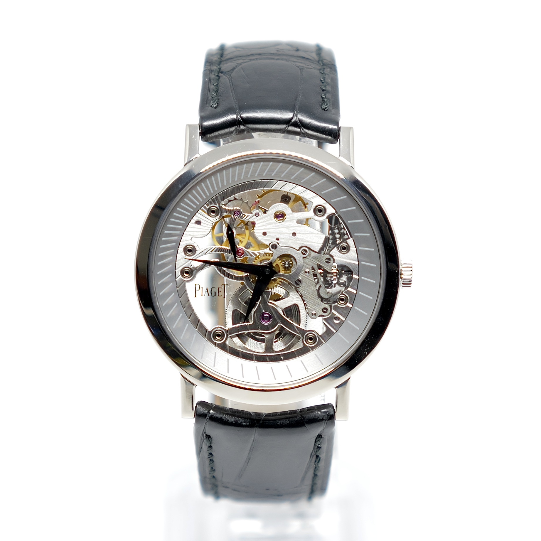 This Piaget Altiplano G0A33115 has a skeleton dial and a leather strap. This Piaget has undergone a thorough inspection of water resistance, accuracy, functionality and condition to determine the level of reconditioning required to meet our strict standards. It has also been referenced against technical documents and manufacturer records where available to ensure authenticity and a clean history. All our watches have a 24-month warranty for your peace of mind.