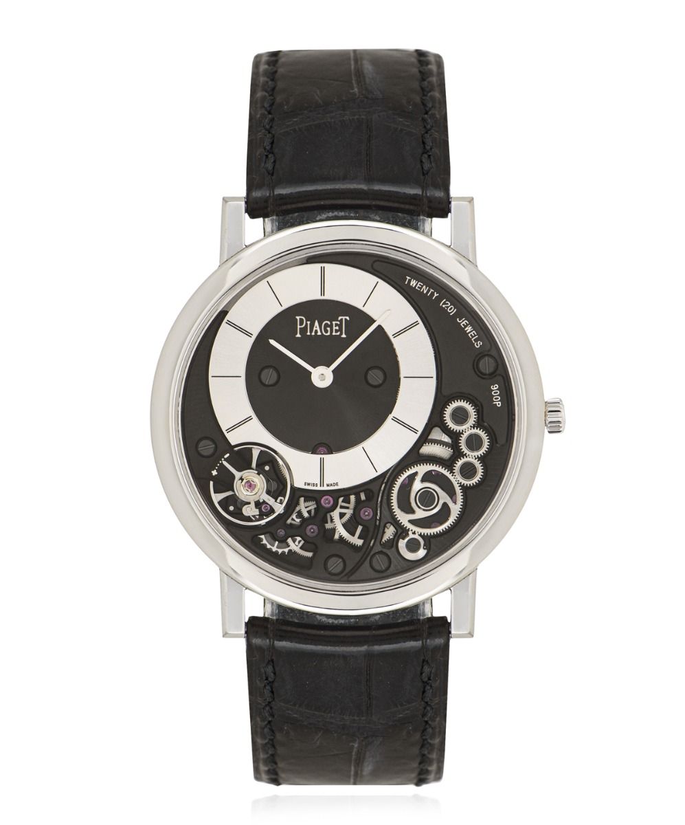 This Piaget Altiplano G0A39111 has a skeleton dial and a leather strap. This Piaget has undergone a thorough inspection of water resistance, accuracy, functionality and condition to determine the level of reconditioning required to meet our strict standards. It has also been referenced against technical documents and manufacturer records where available to ensure authenticity and a clean history. All our watches have a 24-month warranty for your peace of mind.