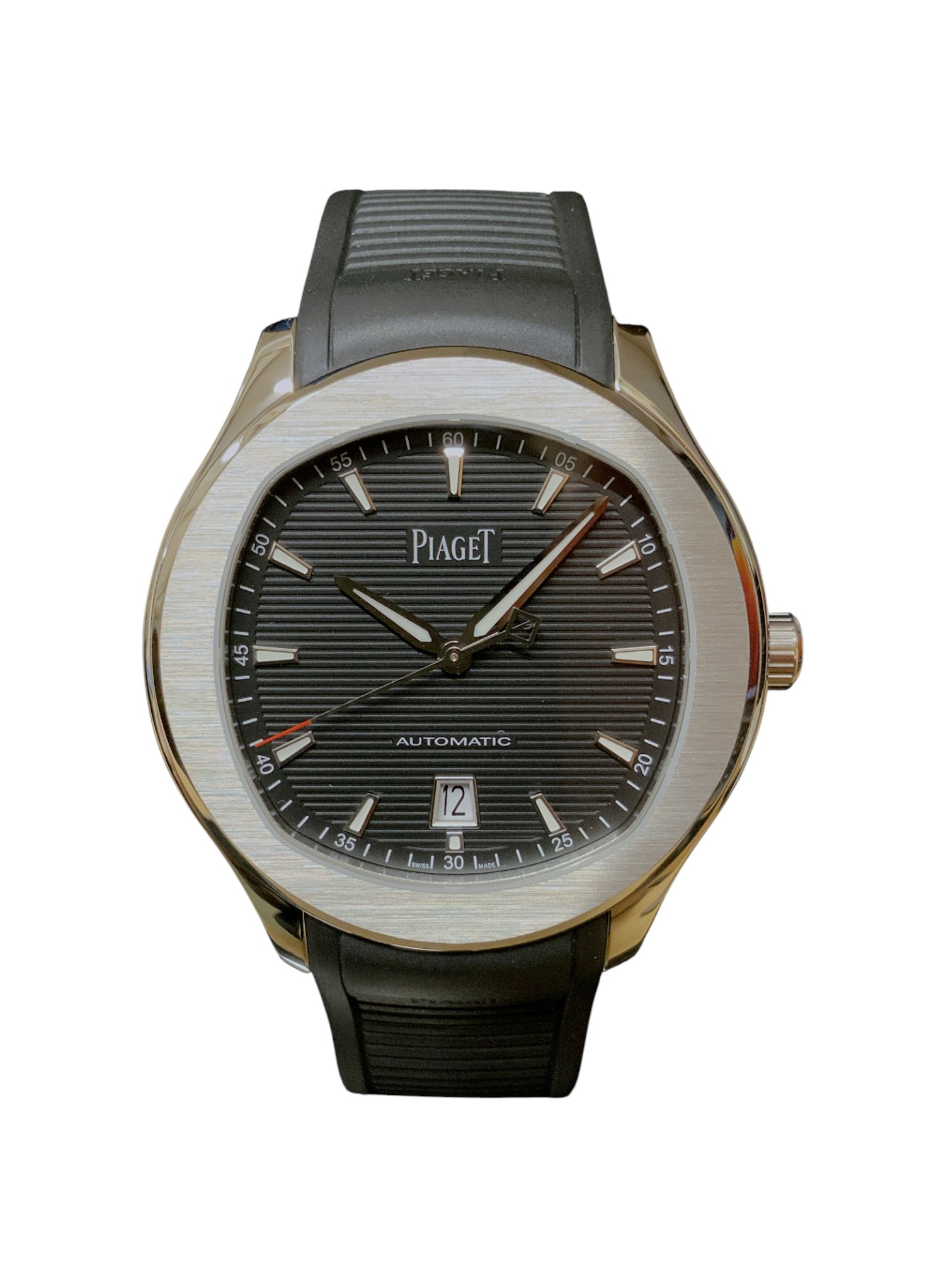 This Piaget Polo G0A47014 has a black baton dial and a rubber strap. This Piaget has undergone a thorough inspection of water resistance, accuracy, functionality and condition to determine the level of reconditioning required to meet our strict standards. It has also been referenced against technical documents and manufacturer records where available to ensure authenticity and a clean history. Our watches have a 24-month warranty for your peace of mind, in conjunction with any remaining manufacturer’s warranty from new or from service.