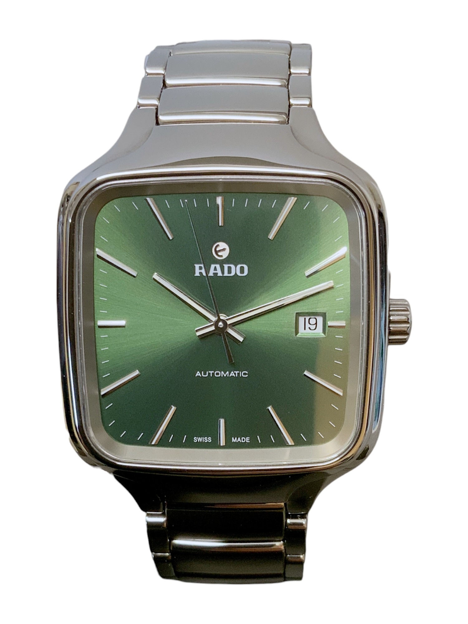 This Rado True R27077312 has a green baton dial and a bracelet strap. This Rado has undergone a thorough inspection of water resistance, accuracy, functionality and condition to determine the level of reconditioning required to meet our strict standards. It has also been referenced against technical documents and manufacturer records where available to ensure authenticity and a clean history. All our watches have a 24-month warranty for your peace of mind.