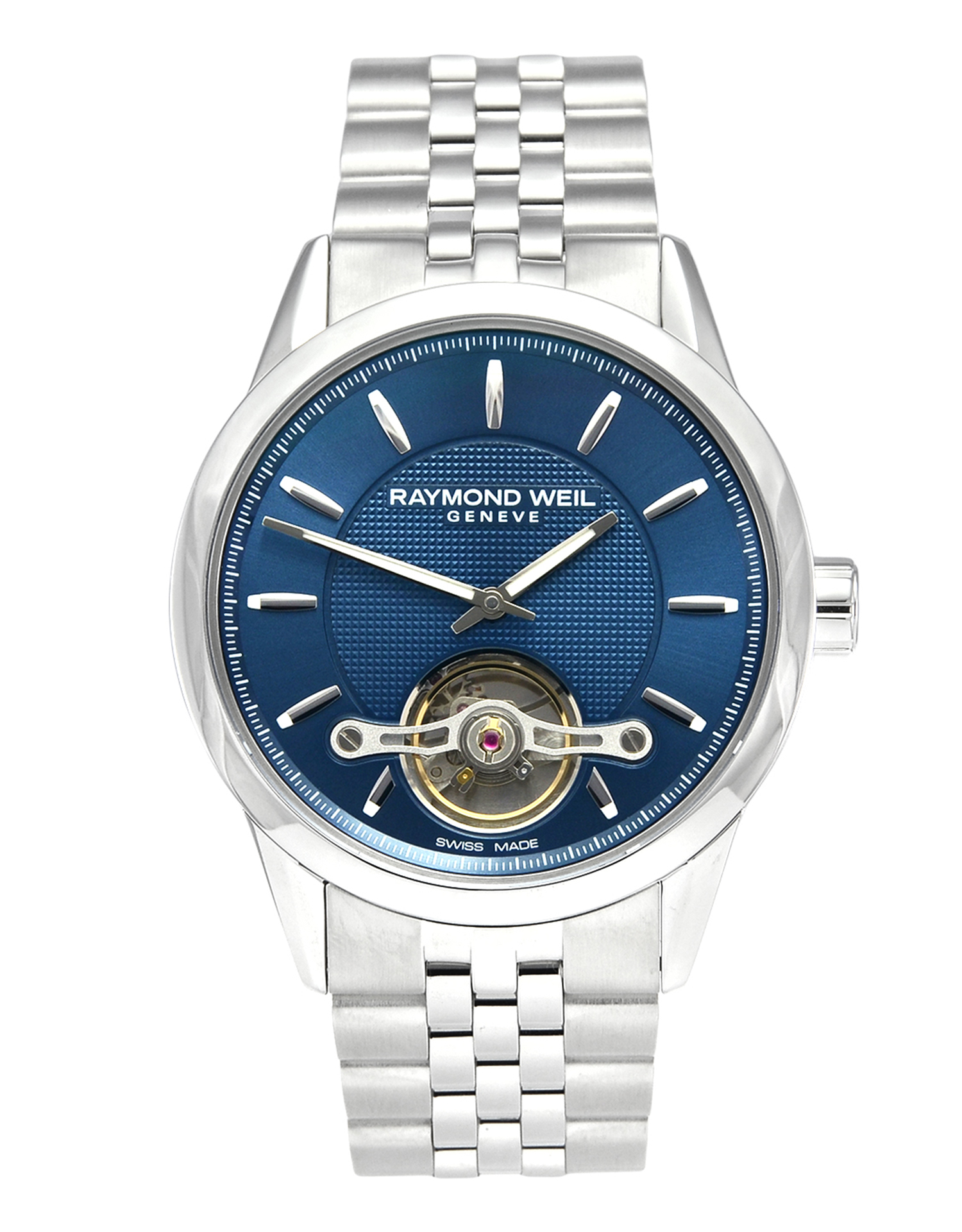 This Raymond Weil Freelancer 2780-ST-50001 has a blue baton dial and a bracelet strap. This Raymond Weil has undergone a thorough inspection of water resistance, accuracy, functionality and condition to determine the level of reconditioning required to meet our strict standards. It has also been referenced against technical documents and manufacturer records where available to ensure authenticity and a clean history. All our watches have a 24-month warranty for your peace of mind.