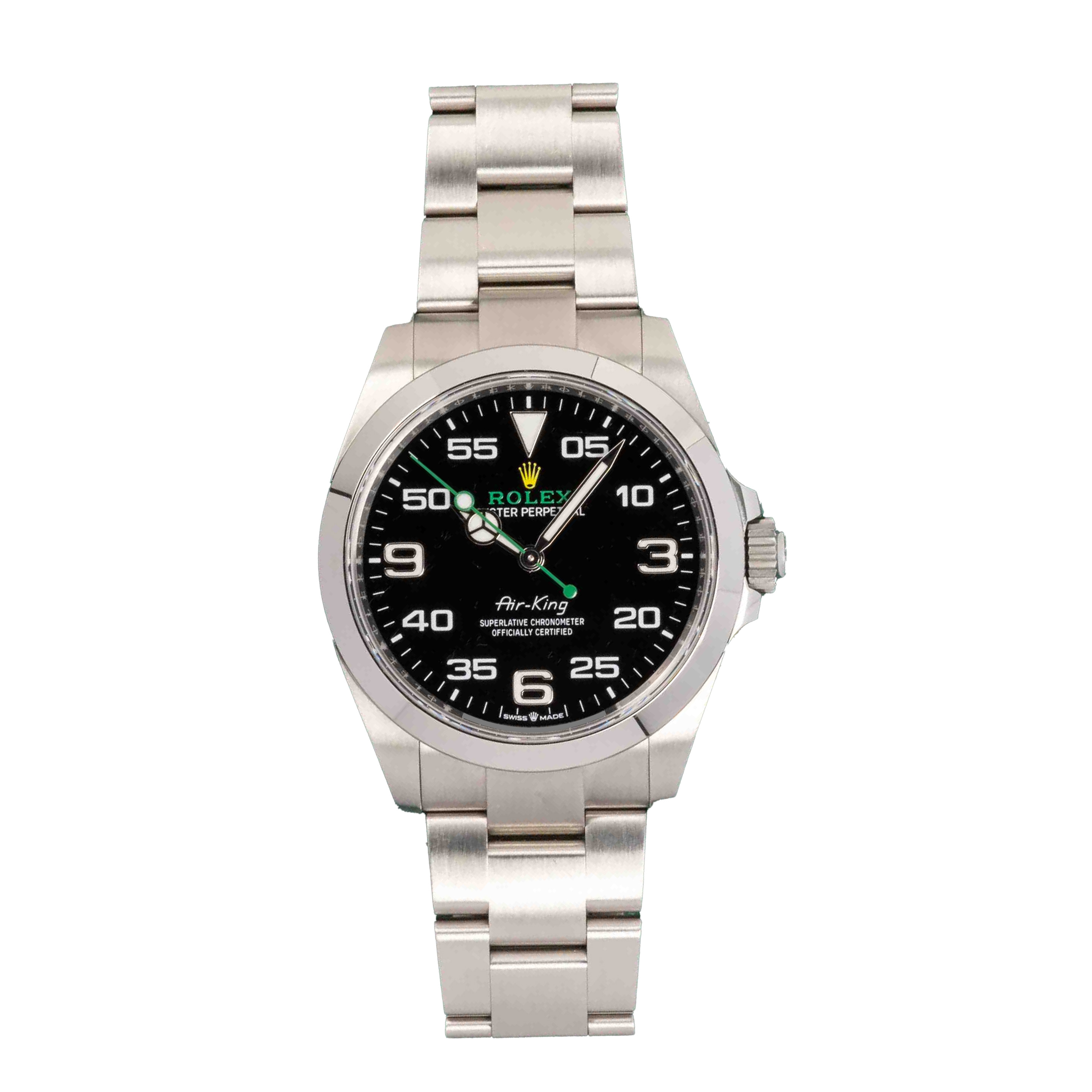 This Rolex Air-King 126900 has a black arabic dial and a bracelet strap. This Rolex has undergone a thorough inspection of water resistance, accuracy, functionality and condition to determine the level of reconditioning required to meet our strict standards. It has also been referenced against technical documents and manufacturer records where available to ensure authenticity and a clean history. Our watches have a 24-month warranty for your peace of mind, in conjunction with any remaining manufacturer’s warranty from new or from service. To maintain the manufacturer’s warranty on this watch, it has not been polished in our service centre.