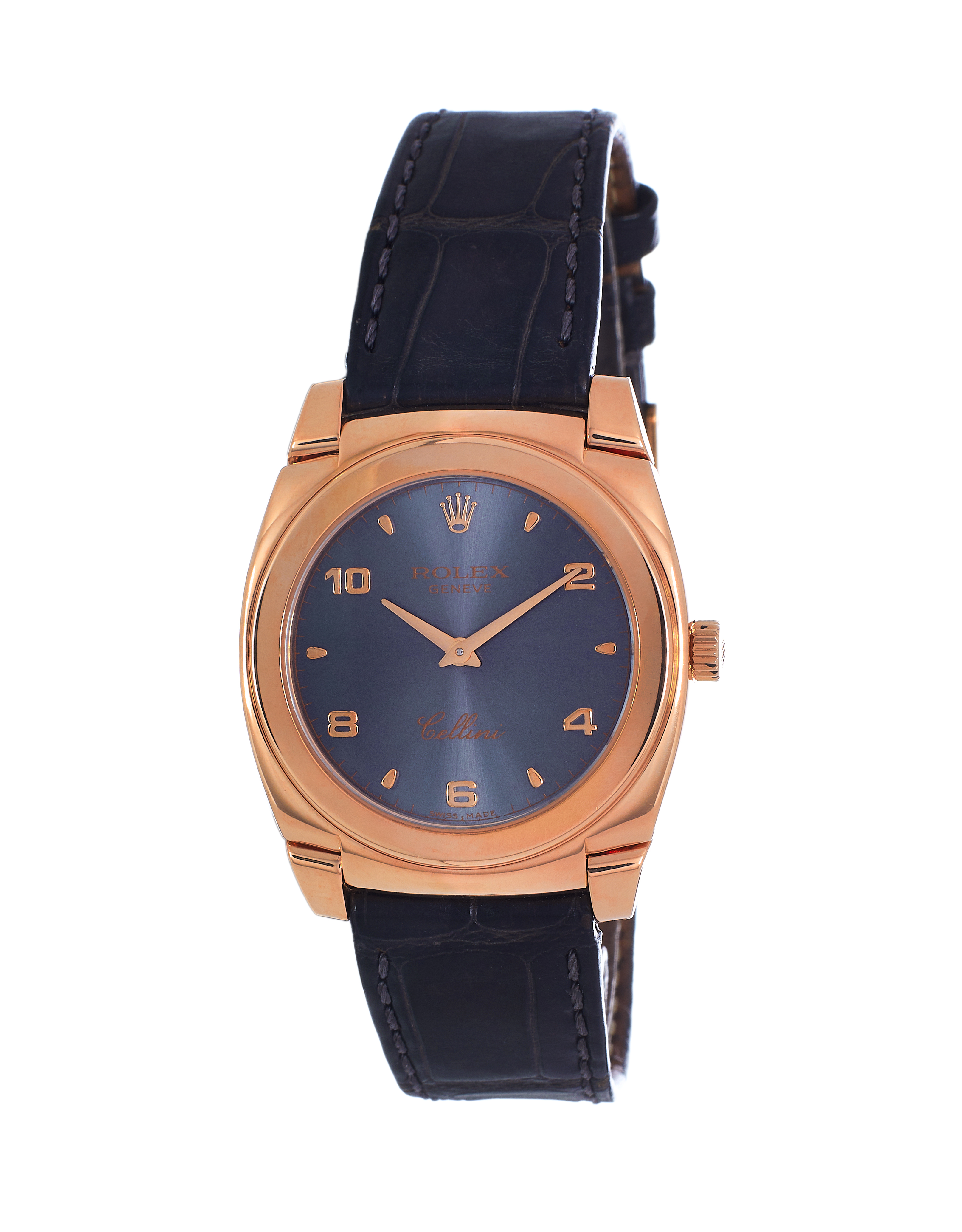 This Rolex Cellini 5320/5 has a grey arabic dial and a leather strap. This Rolex has undergone a thorough inspection of water resistance, accuracy, functionality and condition to determine the level of reconditioning required to meet our strict standards. It has also been referenced against technical documents and manufacturer records where available to ensure authenticity and a clean history. All our watches have a 24-month warranty for your peace of mind. One of our skilled polishing technicians has removed marks on the case and bracelet of this watch, brought about by daily wear and tear, which is why this watch does not come with the remaining manufacturer’s warranty.