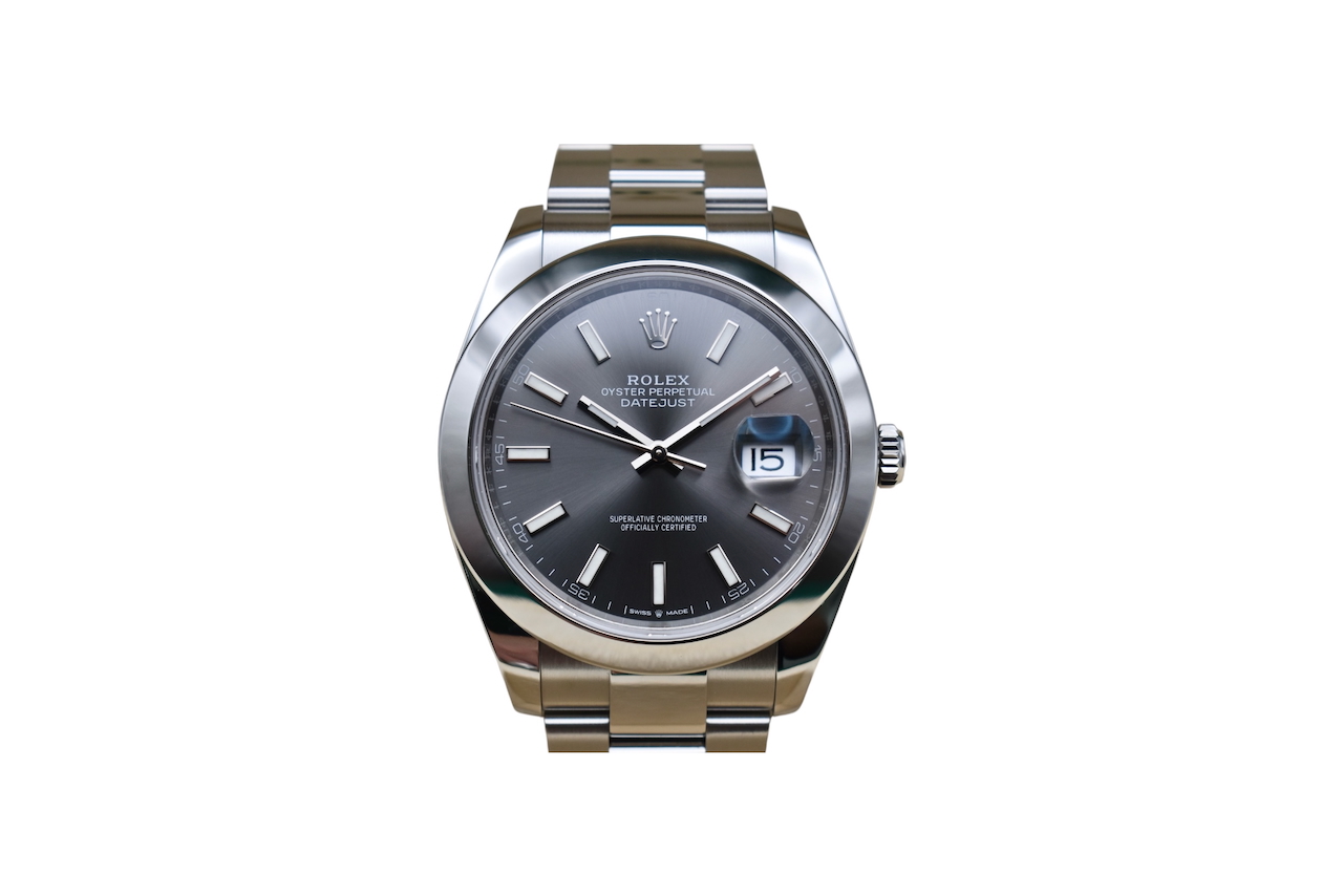 This Rolex Datejust 41 126300 has a slate baton dial and a bracelet strap. This Rolex has undergone a thorough inspection of water resistance, accuracy, functionality and condition to determine the level of reconditioning required to meet our strict standards. It has also been referenced against technical documents and manufacturer records where available to ensure authenticity and a clean history. Our watches have a 24-month warranty for your peace of mind, in conjunction with any remaining manufacturer’s warranty from new or from service. To maintain the manufacturer’s warranty on this watch, it has not been polished in our service centre.