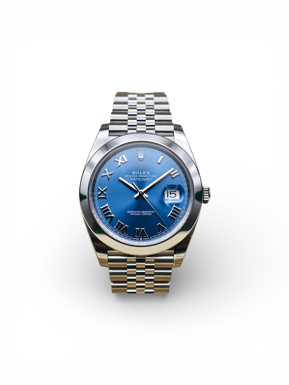 This Rolex Datejust 41 126300 has a blue roman numeral dial and a bracelet strap. This Rolex has undergone a thorough inspection of water resistance, accuracy, functionality and condition to determine the level of reconditioning required to meet our strict standards. It has also been referenced against technical documents and manufacturer records where available to ensure authenticity and a clean history. Our watches have a 24-month warranty for your peace of mind, in conjunction with any remaining manufacturer’s warranty from new or from service. To maintain the manufacturer’s warranty on this watch, it has not been polished in our service centre.