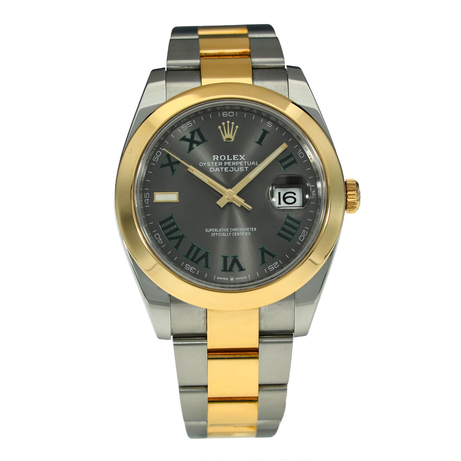 This Rolex Datejust 41 126303 has a slate roman numeral dial and a bracelet strap. This Rolex has undergone a thorough inspection of water resistance, accuracy, functionality and condition to determine the level of reconditioning required to meet our strict standards. It has also been referenced against technical documents and manufacturer records where available to ensure authenticity and a clean history. All our watches have a 24-month warranty for your peace of mind. One of our skilled polishing technicians has removed marks on the case and bracelet of this watch, brought about by daily wear and tear, which is why this watch does not come with the remaining manufacturer’s warranty.