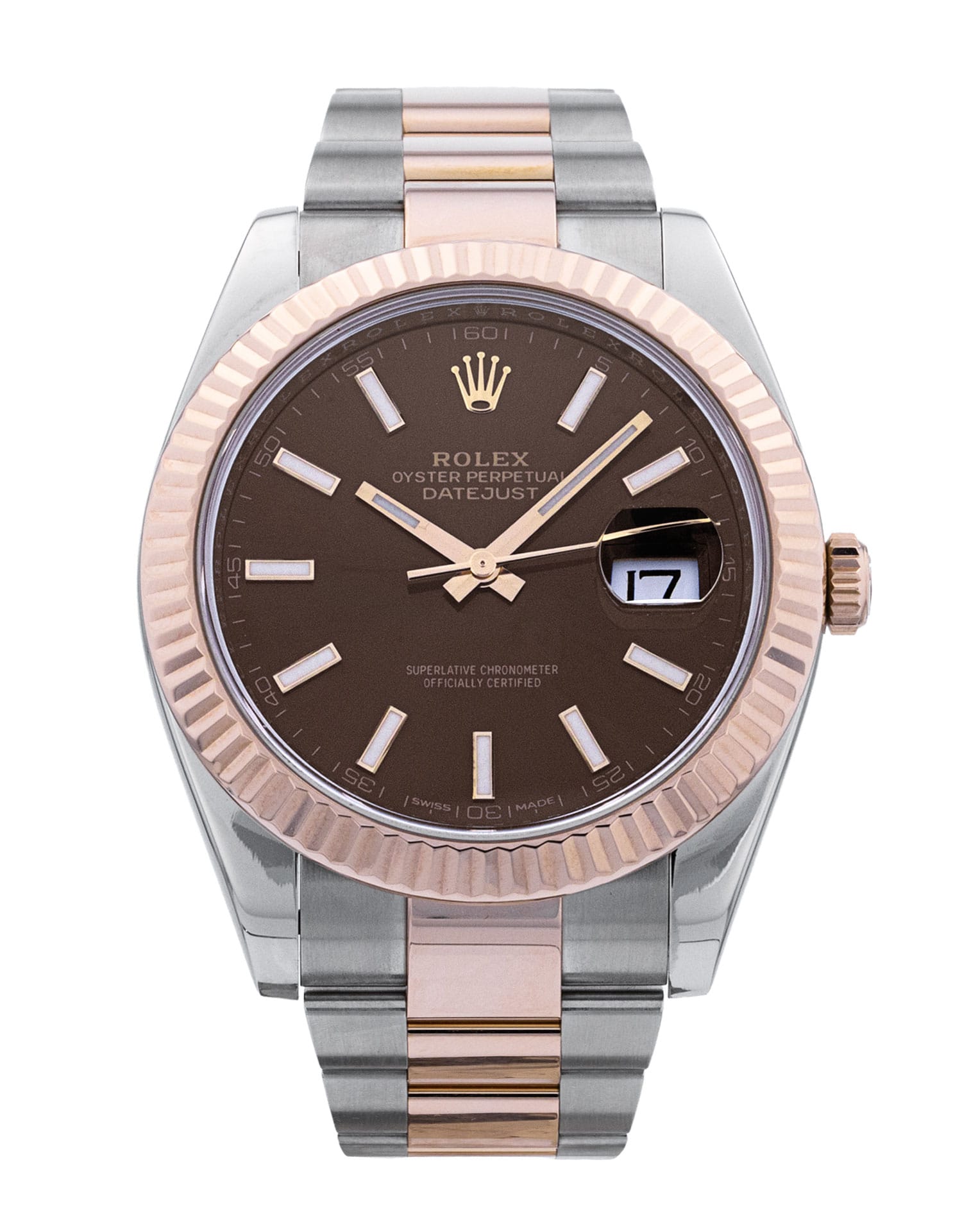 This Rolex Datejust 41 126331 has a chocolate baton dial and a bracelet strap. This Rolex has undergone a thorough inspection of water resistance, accuracy, functionality and condition to determine the level of reconditioning required to meet our strict standards. It has also been referenced against technical documents and manufacturer records where available to ensure authenticity and a clean history. All our watches have a 24-month warranty for your peace of mind. One of our skilled polishing technicians has removed marks on the case and bracelet of this watch, brought about by daily wear and tear, which is why this watch does not come with the remaining manufacturer’s warranty.