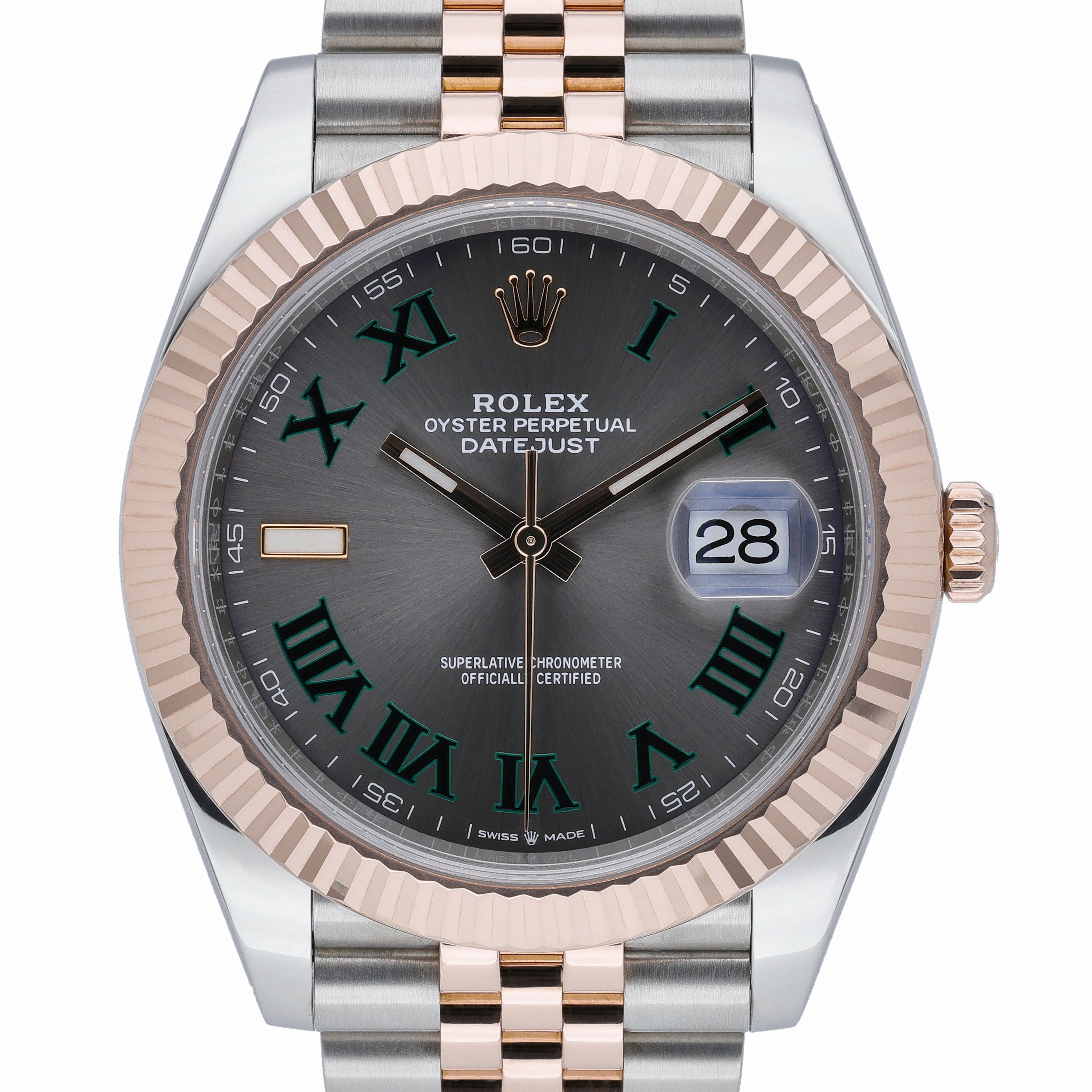 This Rolex Datejust 41 126331 has a slate roman numeral dial and a bracelet strap. This Rolex has undergone a thorough inspection of water resistance, accuracy, functionality and condition to determine the level of reconditioning required to meet our strict standards. It has also been referenced against technical documents and manufacturer records where available to ensure authenticity and a clean history. All our watches have a 24-month warranty for your peace of mind. One of our skilled polishing technicians has removed marks on the case and bracelet of this watch, brought about by daily wear and tear, which is why this watch does not come with the remaining manufacturer’s warranty.