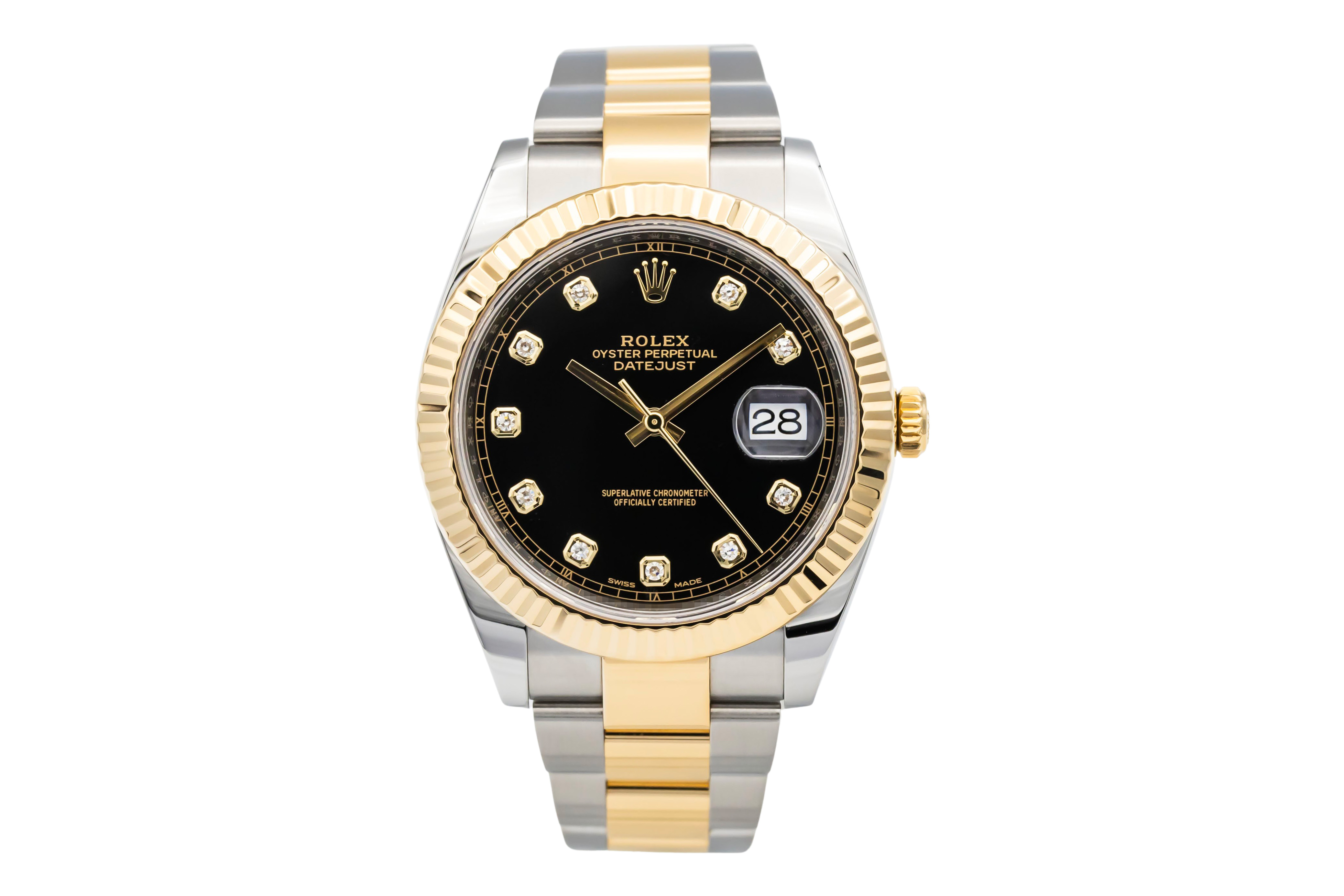 This Rolex Datejust 41 126333 has a black diamond dial and a bracelet strap. This Rolex has undergone a thorough inspection of water resistance, accuracy, functionality and condition to determine the level of reconditioning required to meet our strict standards. It has also been referenced against technical documents and manufacturer records where available to ensure authenticity and a clean history. All our watches have a 24-month warranty for your peace of mind. One of our skilled polishing technicians has removed marks on the case and bracelet of this watch, brought about by daily wear and tear, which is why this watch does not come with the remaining manufacturer’s warranty.
