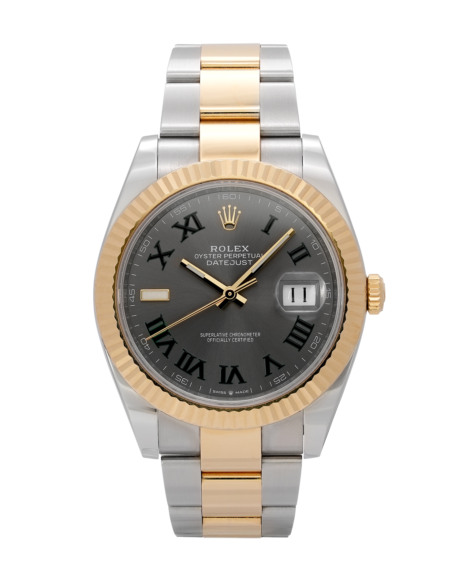 This Rolex Datejust 41 126333 has a slate roman numeral dial and a bracelet strap. This Rolex has undergone a thorough inspection of water resistance, accuracy, functionality and condition to determine the level of reconditioning required to meet our strict standards. It has also been referenced against technical documents and manufacturer records where available to ensure authenticity and a clean history. Our watches have a 24-month warranty for your peace of mind, in conjunction with any remaining manufacturer’s warranty from new or from service. To maintain the manufacturer’s warranty on this watch, it has not been polished in our service centre.