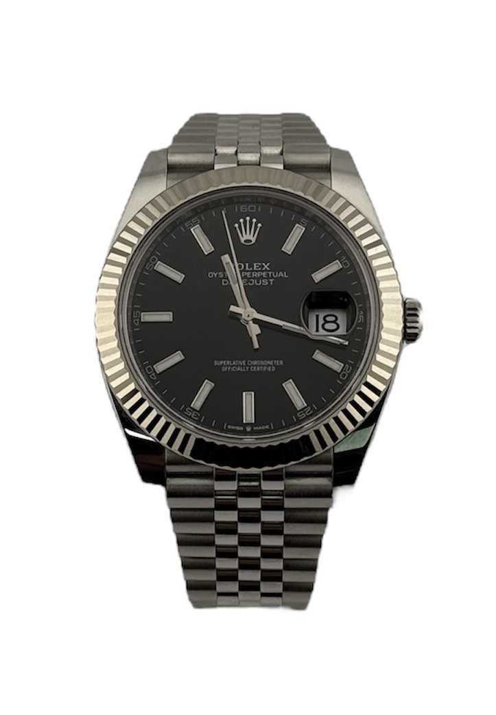 This Rolex Datejust 41 126334 has a black baton dial and a bracelet strap. This Rolex has undergone a thorough inspection of water resistance, accuracy, functionality and condition to determine the level of reconditioning required to meet our strict standards. It has also been referenced against technical documents and manufacturer records where available to ensure authenticity and a clean history. All our watches have a 24-month warranty for your peace of mind. One of our skilled polishing technicians has removed marks on the case and bracelet of this watch, brought about by daily wear and tear, which is why this watch does not come with the remaining manufacturer’s warranty.