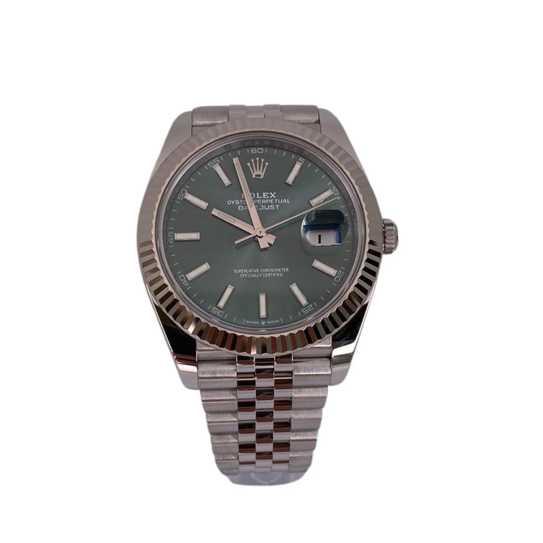 This Rolex Datejust 41 126334 has a mint green baton dial and a bracelet strap. This Rolex has undergone a thorough inspection of water resistance, accuracy, functionality and condition to determine the level of reconditioning required to meet our strict standards. It has also been referenced against technical documents and manufacturer records where available to ensure authenticity and a clean history. Our watches have a 24-month warranty for your peace of mind, in conjunction with any remaining manufacturer’s warranty from new or from service. To maintain the manufacturer’s warranty on this watch, it has not been polished in our service centre.