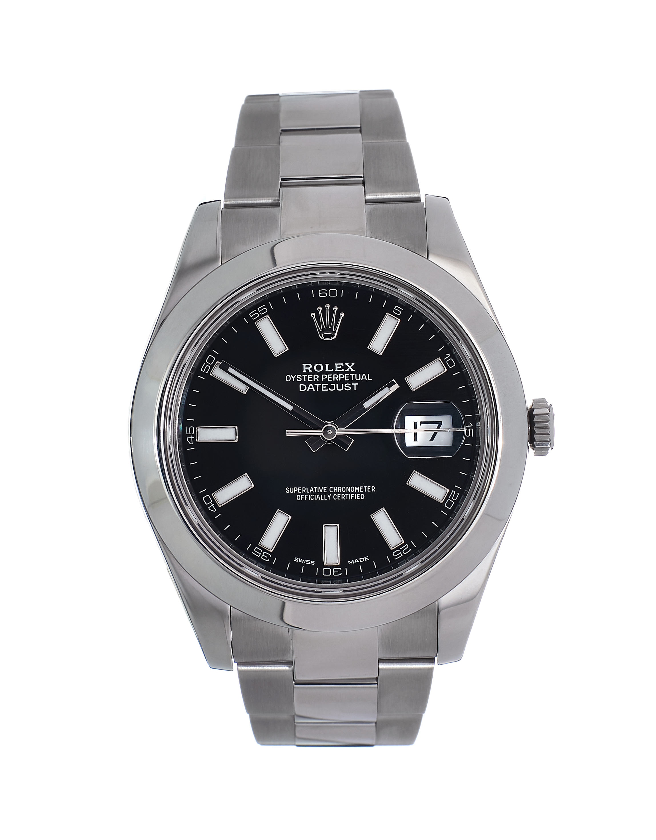 This Rolex Datejust II 116300 has a black baton dial and a bracelet strap. This Rolex has undergone a thorough inspection of water resistance, accuracy, functionality and condition to determine the level of reconditioning required to meet our strict standards. It has also been referenced against technical documents and manufacturer records where available to ensure authenticity and a clean history. All our watches have a 24-month warranty for your peace of mind. One of our skilled polishing technicians has removed marks on the case and bracelet of this watch, brought about by daily wear and tear, which is why this watch does not come with the remaining manufacturer’s warranty.
