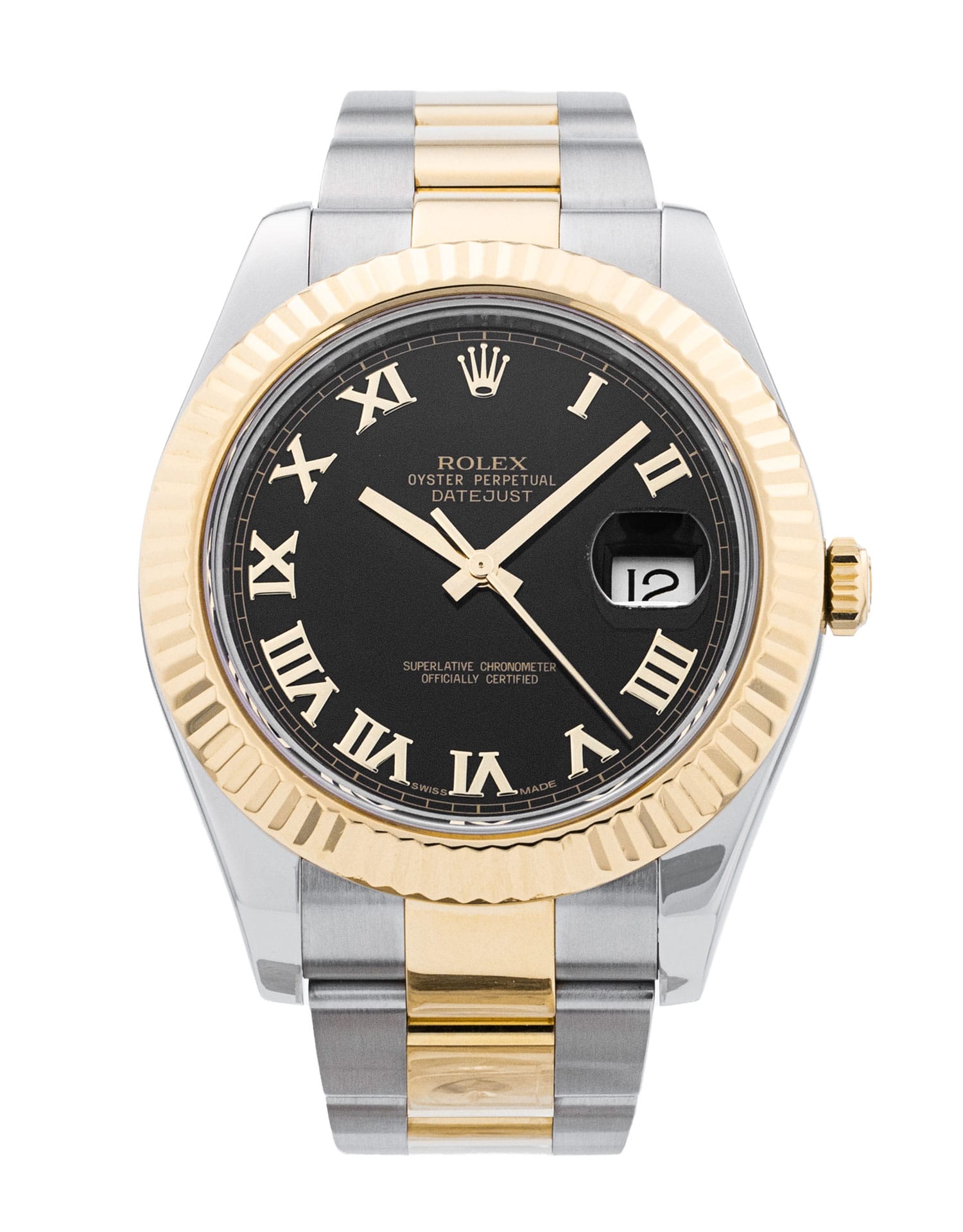 This Rolex Datejust II 116333 has a black roman numeral dial and a bracelet strap. This Rolex has undergone a thorough inspection of water resistance, accuracy, functionality and condition to determine the level of reconditioning required to meet our strict standards. It has also been referenced against technical documents and manufacturer records where available to ensure authenticity and a clean history. Our watches have a 24-month warranty for your peace of mind, in conjunction with any remaining manufacturer’s warranty from new or from service. To maintain the manufacturer’s warranty on this watch, it has not been polished in our service centre.