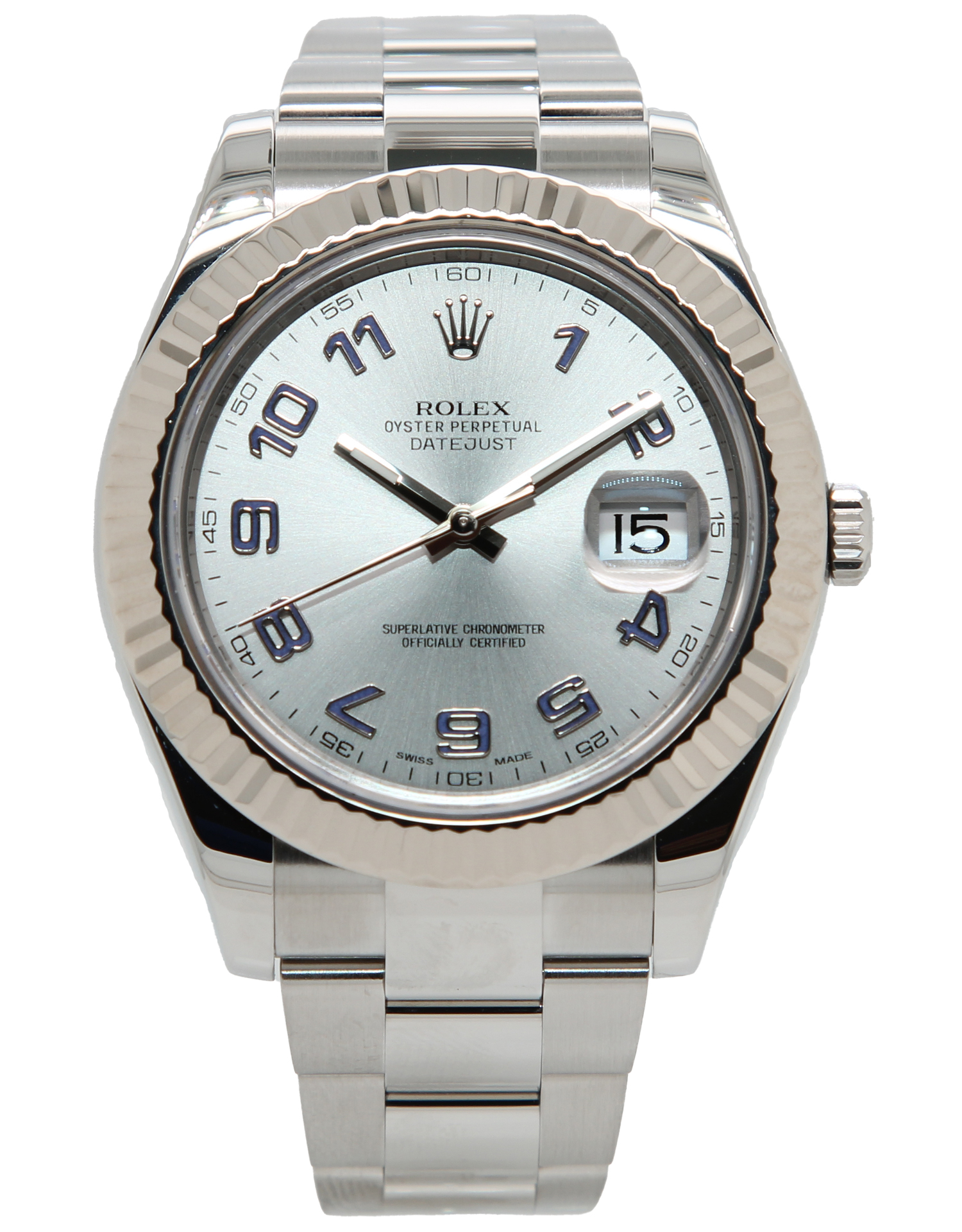 This Rolex Datejust II 116334 has a silver arabic dial and a bracelet strap. This Rolex has undergone a thorough inspection of water resistance, accuracy, functionality and condition to determine the level of reconditioning required to meet our strict standards. It has also been referenced against technical documents and manufacturer records where available to ensure authenticity and a clean history. All our watches have a 24-month warranty for your peace of mind. One of our skilled polishing technicians has removed marks on the case and bracelet of this watch, brought about by daily wear and tear, which is why this watch does not come with the remaining manufacturer’s warranty.