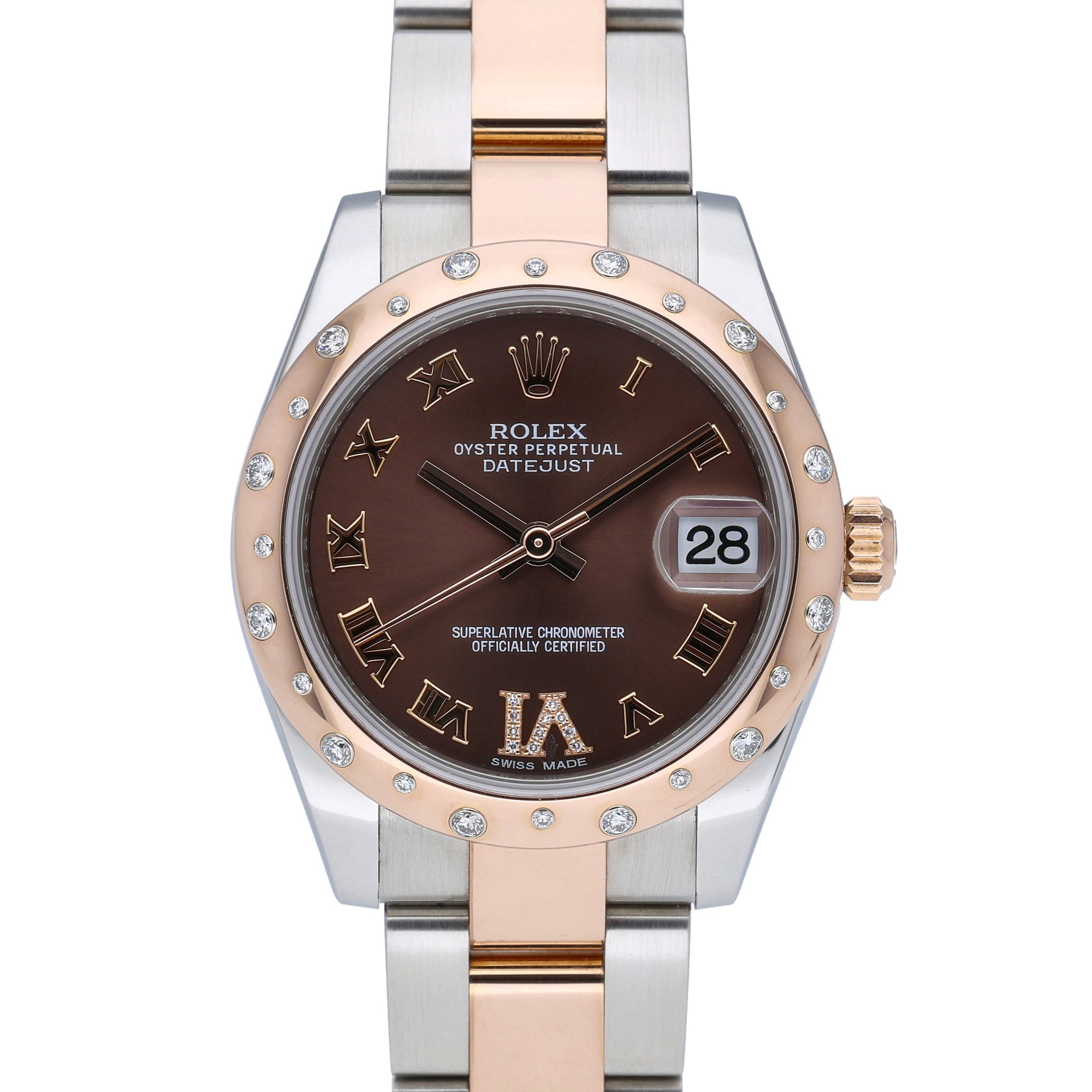 This Rolex Datejust Lady 31 178341 has a chocolate roman numeral diamond dial and a bracelet strap. This Rolex has undergone a thorough inspection of water resistance, accuracy, functionality and condition to determine the level of reconditioning required to meet our strict standards. It has also been referenced against technical documents and manufacturer records where available to ensure authenticity and a clean history. All our watches have a 24-month warranty for your peace of mind. One of our skilled polishing technicians has removed marks on the case and bracelet of this watch, brought about by daily wear and tear, which is why this watch does not come with the remaining manufacturer’s warranty.