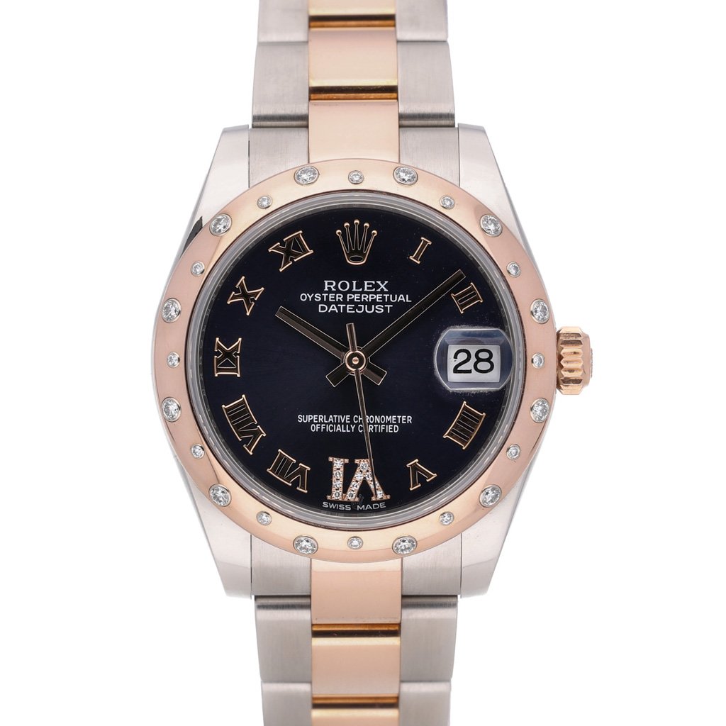 This Rolex Datejust Lady 31 178341 has a purple roman numeral diamond dial and a bracelet strap. This Rolex has undergone a thorough inspection of water resistance, accuracy, functionality and condition to determine the level of reconditioning required to meet our strict standards. It has also been referenced against technical documents and manufacturer records where available to ensure authenticity and a clean history. All our watches have a 24-month warranty for your peace of mind. One of our skilled polishing technicians has removed marks on the case and bracelet of this watch, brought about by daily wear and tear, which is why this watch does not come with the remaining manufacturer’s warranty.