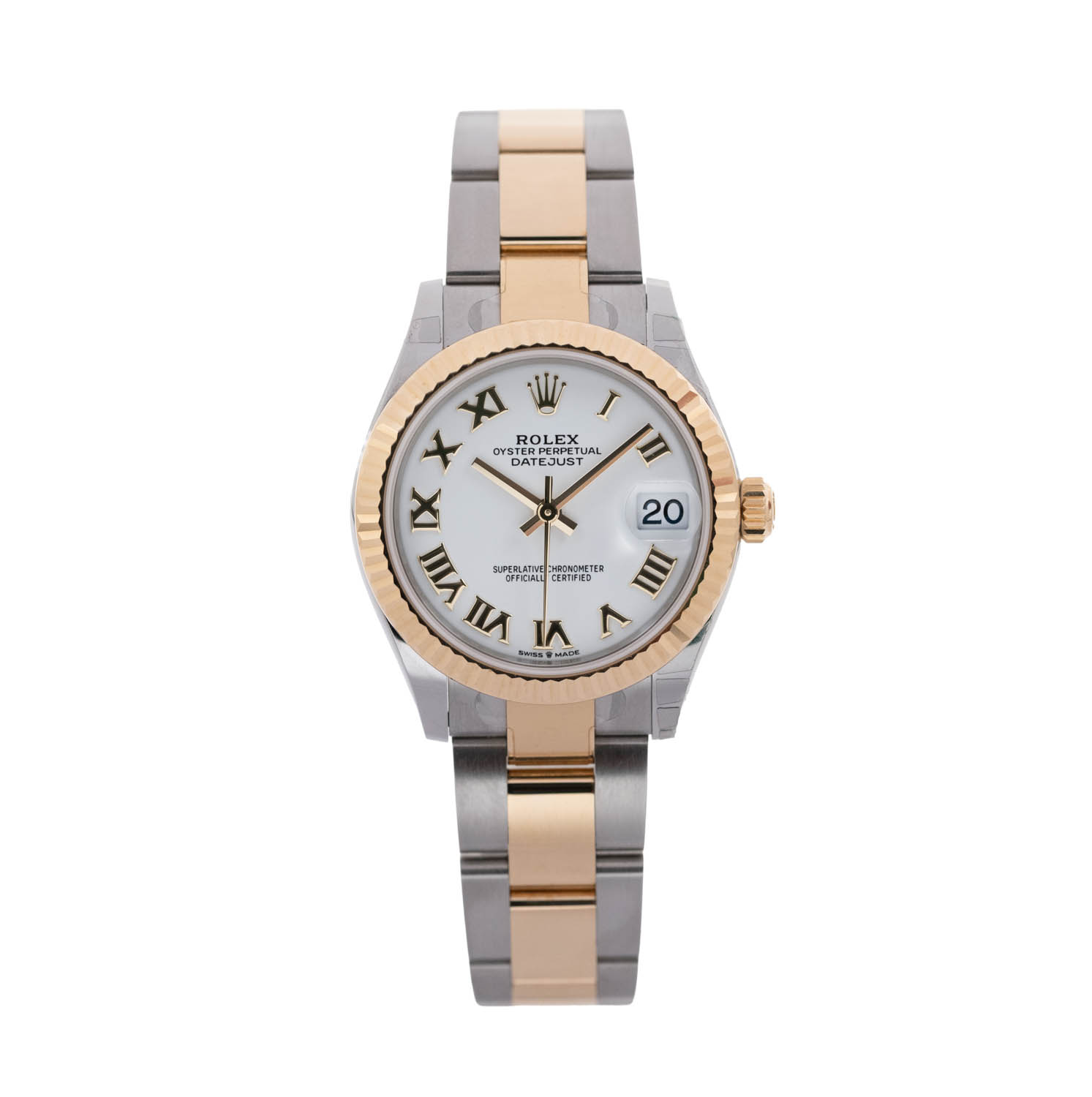 This Rolex Datejust Lady 31 278273 has a white roman numeral dial and a bracelet strap. This Rolex has undergone a thorough inspection of water resistance, accuracy, functionality and condition to determine the level of reconditioning required to meet our strict standards. It has also been referenced against technical documents and manufacturer records where available to ensure authenticity and a clean history. Our watches have a 24-month warranty for your peace of mind, in conjunction with any remaining manufacturer’s warranty from new or from service. To maintain the manufacturer’s warranty on this watch, it has not been polished in our service centre.