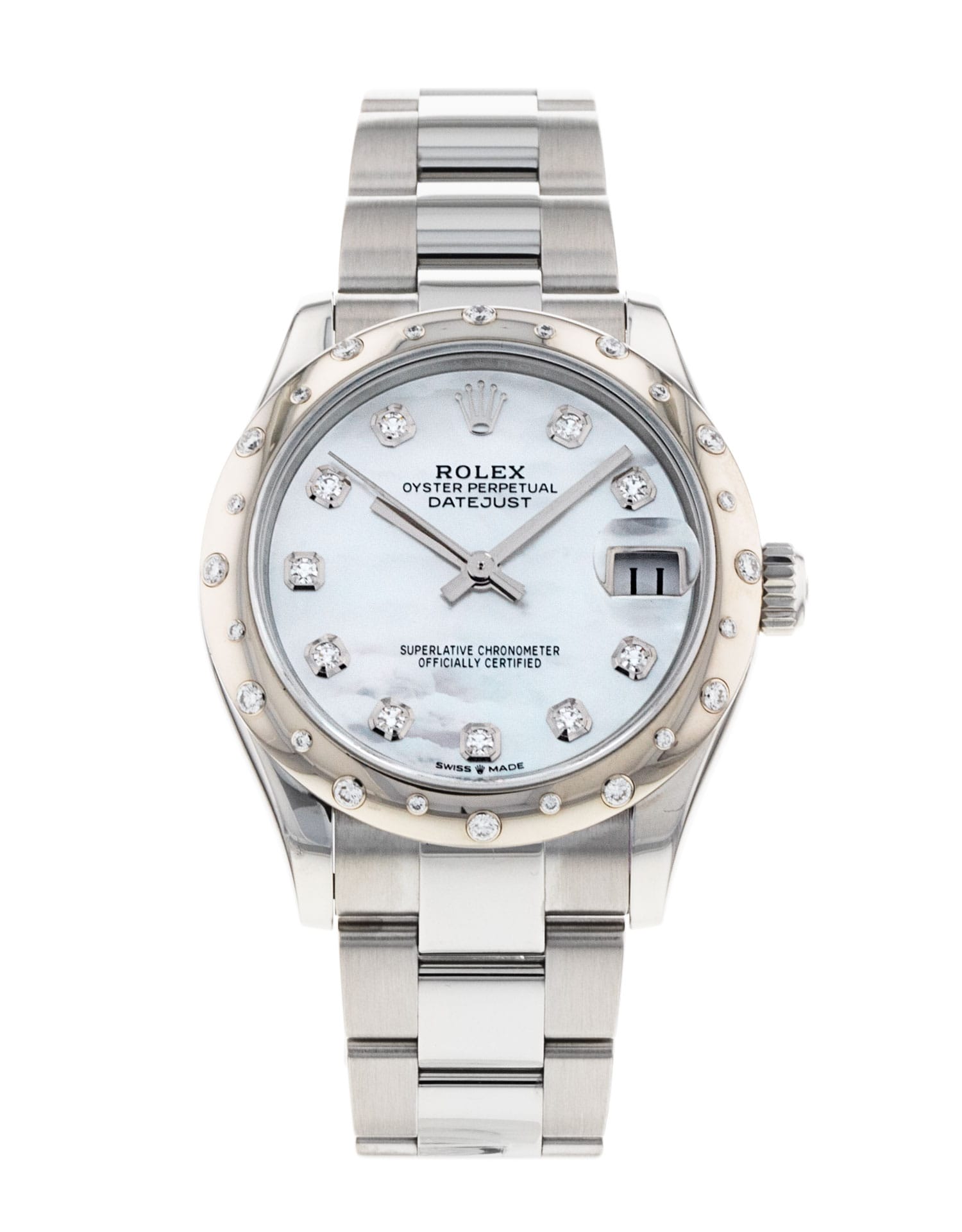 This Rolex Datejust Lady 31 278344 RBR has a mother of pearl white - diamond dial and a bracelet strap. This Rolex has undergone a thorough inspection of water resistance, accuracy, functionality and condition to determine the level of reconditioning required to meet our strict standards. It has also been referenced against technical documents and manufacturer records where available to ensure authenticity and a clean history. All our watches have a 24-month warranty for your peace of mind. One of our skilled polishing technicians has removed marks on the case and bracelet of this watch, brought about by daily wear and tear, which is why this watch does not come with the remaining manufacturer’s warranty.