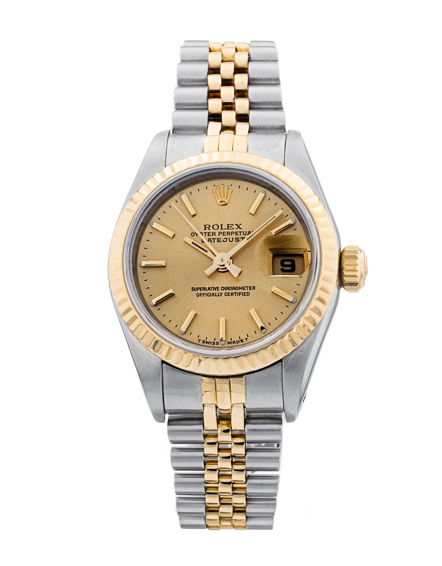 This Rolex Datejust Lady 69173 has a champagne baton dial and a bracelet strap. This Rolex has undergone a thorough inspection of water resistance, accuracy, functionality and condition to determine the level of reconditioning required to meet our strict standards. It has also been referenced against technical documents and manufacturer records where available to ensure authenticity and a clean history. Our watches have a 24-month warranty for your peace of mind, in conjunction with any remaining manufacturer’s warranty from new or from service. To maintain the manufacturer’s warranty on this watch, it has not been polished in our service centre.