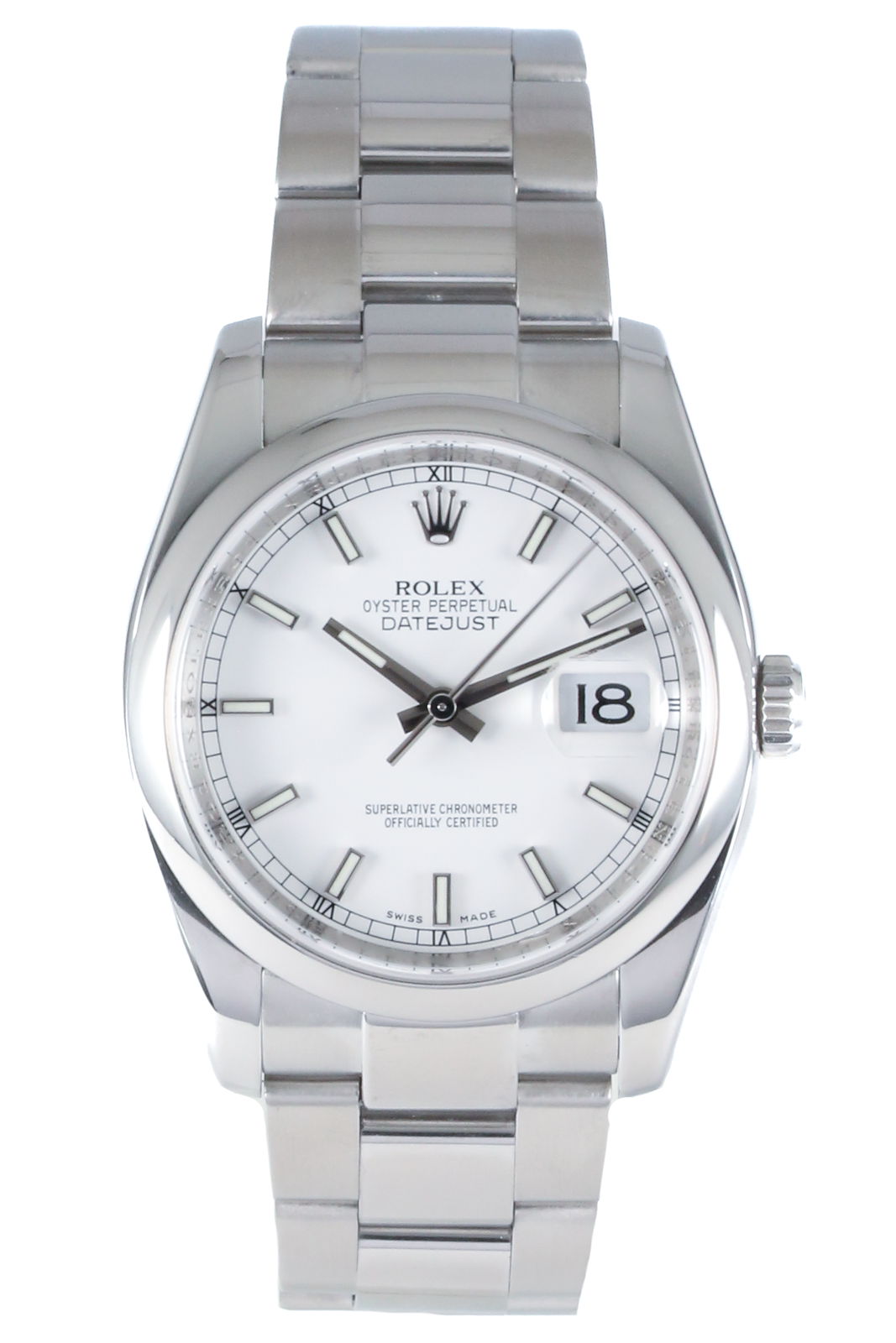 This Rolex Datejust 116200 has a white baton dial and a bracelet strap. This Rolex has undergone a thorough inspection of water resistance, accuracy, functionality and condition to determine the level of reconditioning required to meet our strict standards. It has also been referenced against technical documents and manufacturer records where available to ensure authenticity and a clean history. Our watches have a 24-month warranty for your peace of mind, in conjunction with any remaining manufacturer’s warranty from new or from service. To maintain the manufacturer’s warranty on this watch, it has not been polished in our service centre.