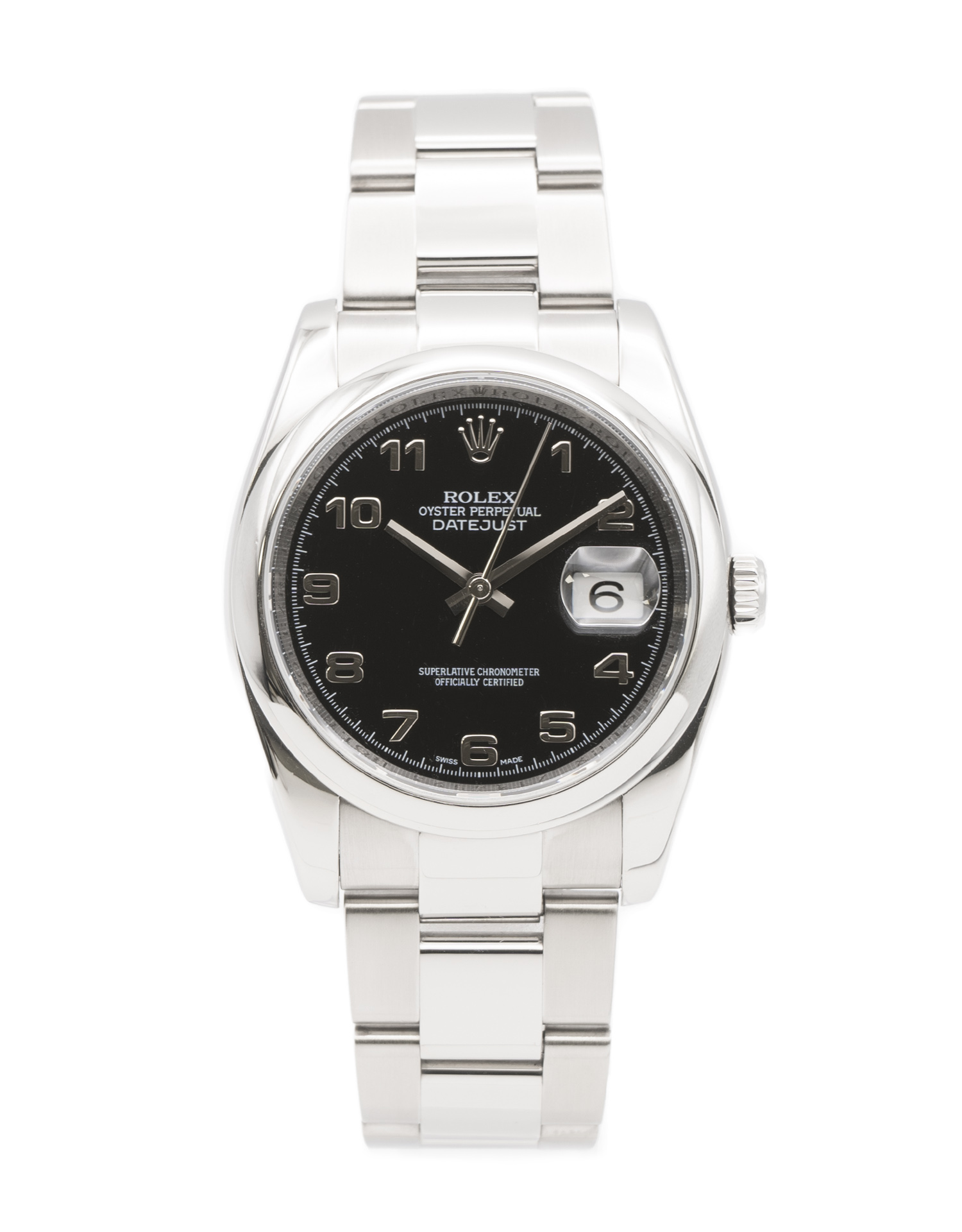This Rolex Datejust 116200 has a black arabic dial and a bracelet strap. This Rolex has undergone a thorough inspection of water resistance, accuracy, functionality and condition to determine the level of reconditioning required to meet our strict standards. It has also been referenced against technical documents and manufacturer records where available to ensure authenticity and a clean history. All our watches have a 24-month warranty for your peace of mind. One of our skilled polishing technicians has removed marks on the case and bracelet of this watch, brought about by daily wear and tear, which is why this watch does not come with the remaining manufacturer’s warranty.