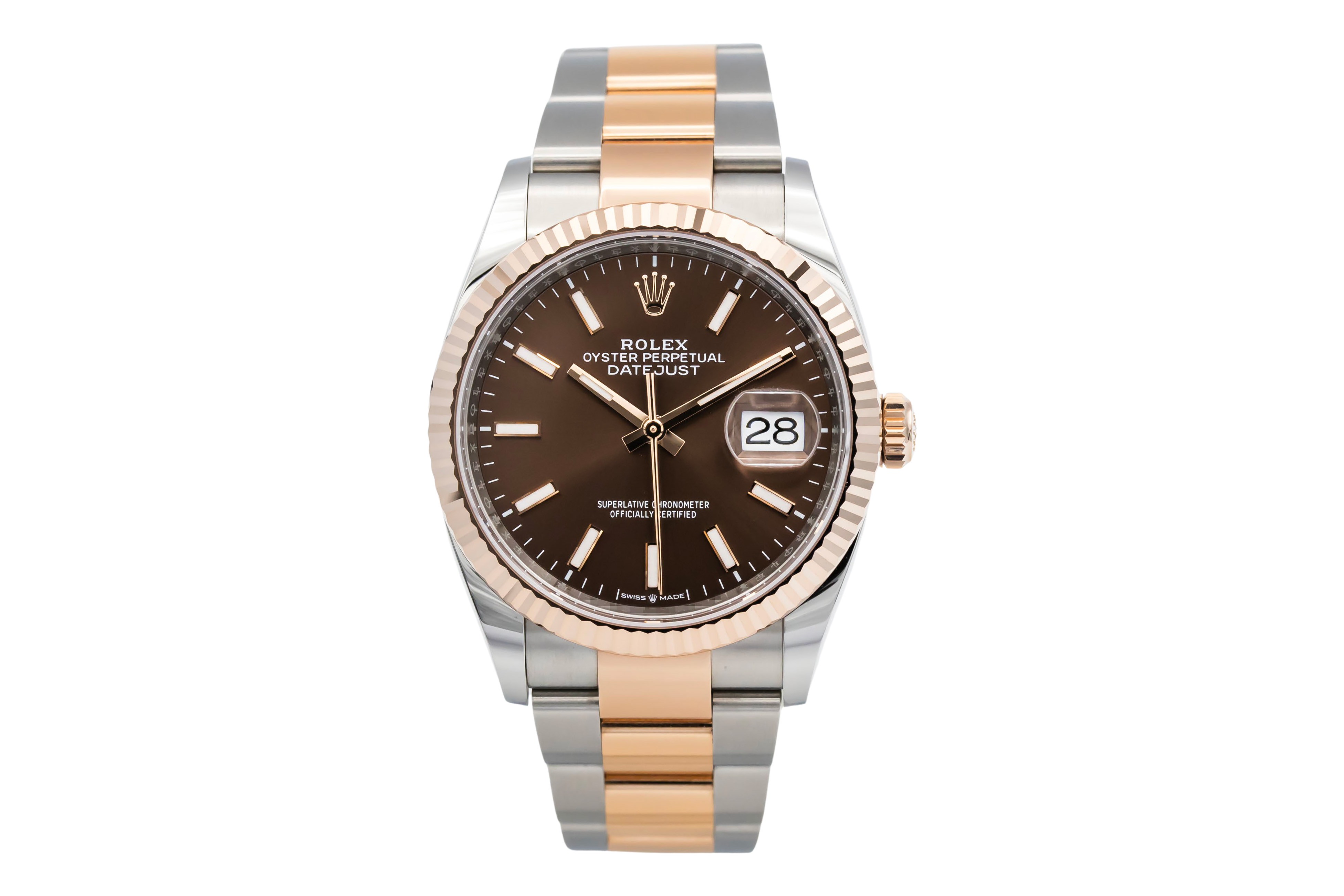This Rolex Datejust 126231 has a chocolate baton dial and a bracelet strap. This Rolex has undergone a thorough inspection of water resistance, accuracy, functionality and condition to determine the level of reconditioning required to meet our strict standards. It has also been referenced against technical documents and manufacturer records where available to ensure authenticity and a clean history. Our watches have a 24-month warranty for your peace of mind, in conjunction with any remaining manufacturer’s warranty from new or from service. To maintain the manufacturer’s warranty on this watch, it has not been polished in our service centre.
