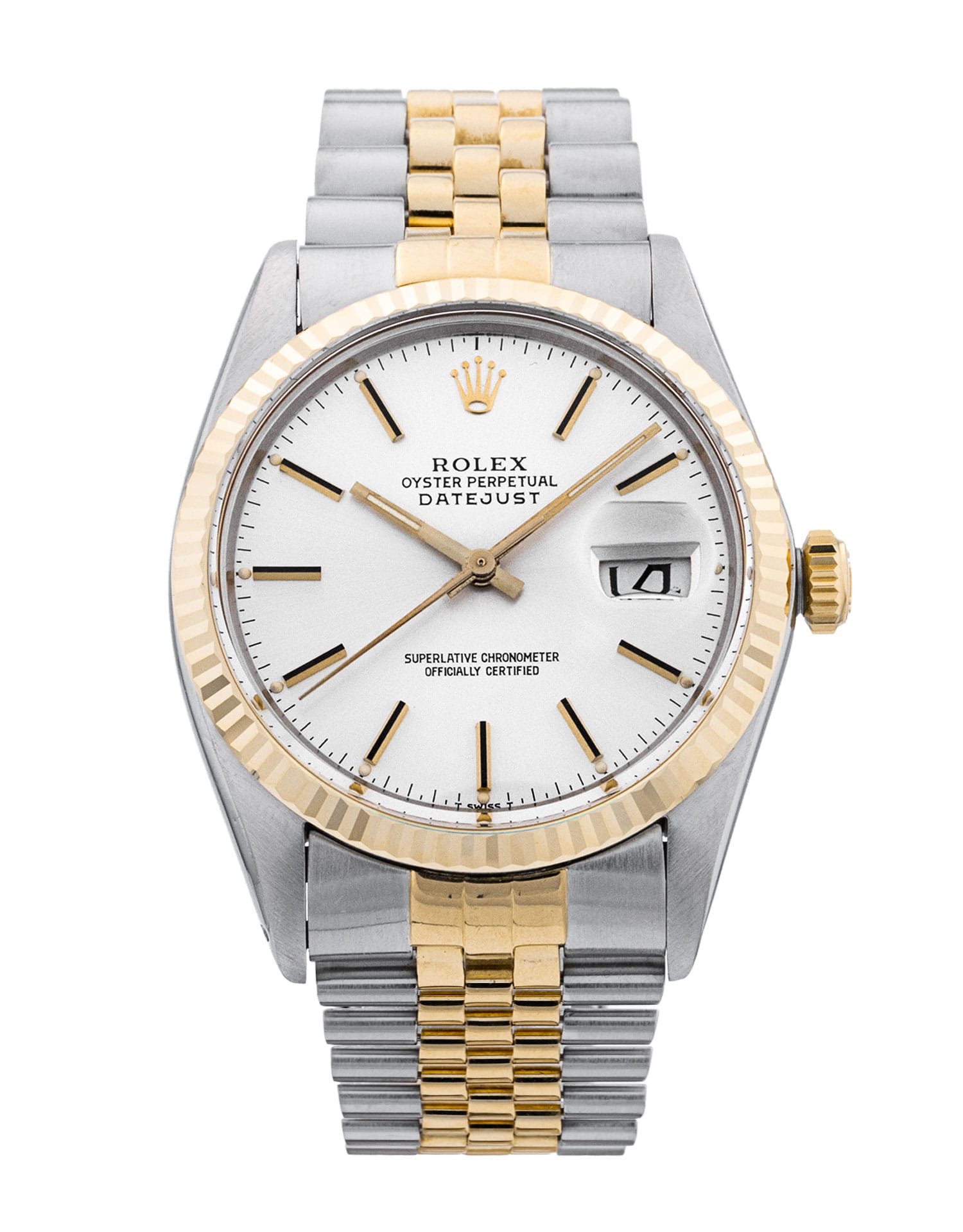 This Rolex Datejust 16013 has a silver baton dial and a bracelet strap. Due to age, this Rolex may not fall within our typical expected tolerances for timekeeping, and is no longer suitable for use in wet environments or submersion in water. In the interests of preserving original features, utmost care has been taken to sympathetically restore this watch. It has also been referenced against technical documents and manufacturer records where available to ensure authenticity and a clean history. To maintain the manufacturer’s warranty on this watch, it has not been polished in our service centre.
