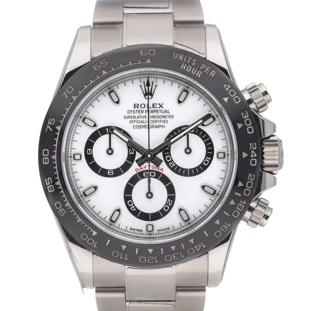 This Rolex Daytona 116500 LN has a white dial and a bracelet strap. This Rolex has undergone a thorough inspection of water resistance, accuracy, functionality and condition to determine the level of reconditioning required to meet our strict standards. It has also been referenced against technical documents and manufacturer records where available to ensure authenticity and a clean history. Our watches have a 24-month warranty for your peace of mind, in conjunction with any remaining manufacturer’s warranty from new or from service. To maintain the manufacturer’s warranty on this watch, it has not been polished in our service centre.