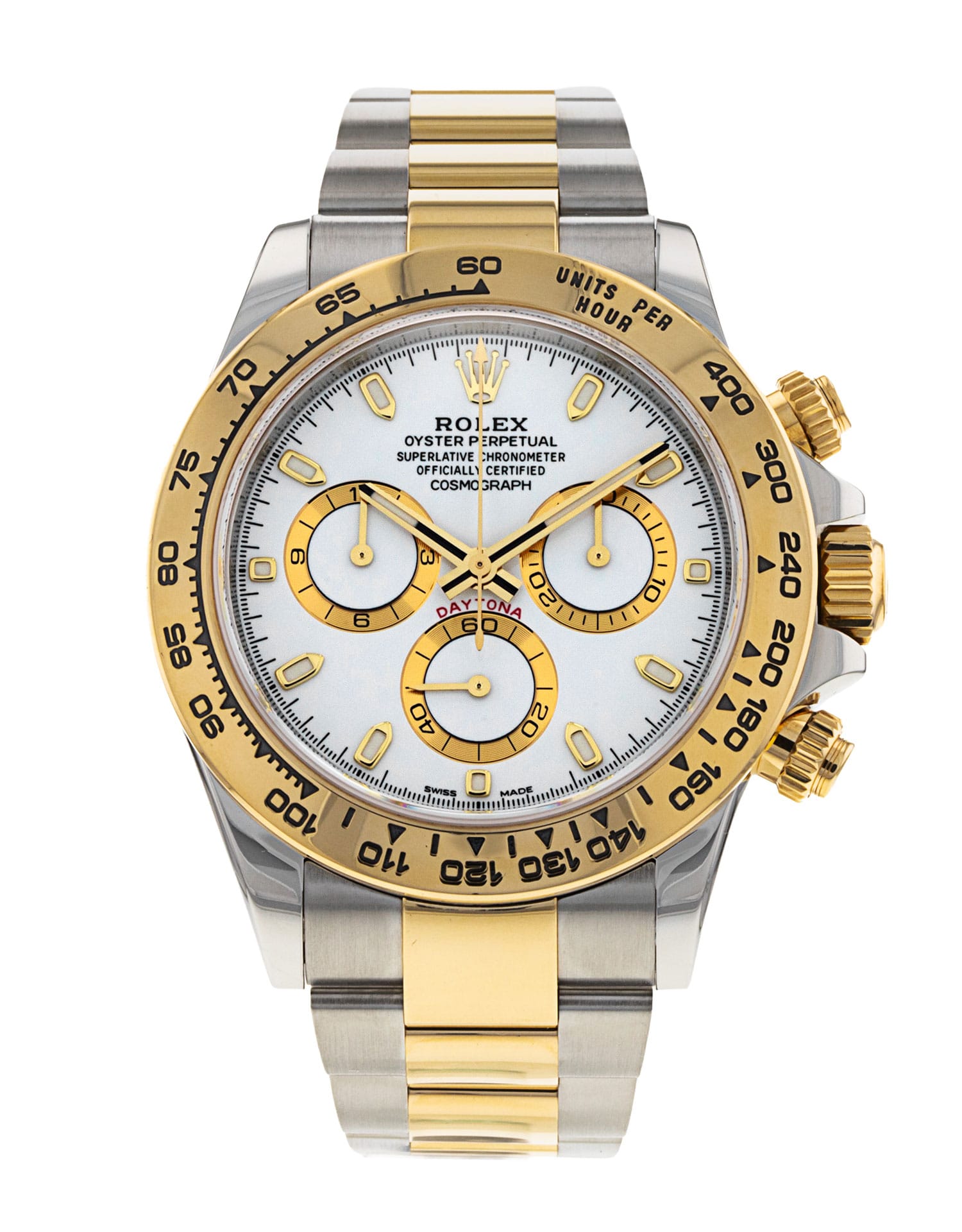 This Rolex Daytona 116503 has a white baton dial and a bracelet strap. This Rolex has undergone a thorough inspection of water resistance, accuracy, functionality and condition to determine the level of reconditioning required to meet our strict standards. It has also been referenced against technical documents and manufacturer records where available to ensure authenticity and a clean history. All our watches have a 24-month warranty for your peace of mind. One of our skilled polishing technicians has removed marks on the case and bracelet of this watch, brought about by daily wear and tear, which is why this watch does not come with the remaining manufacturer’s warranty.
