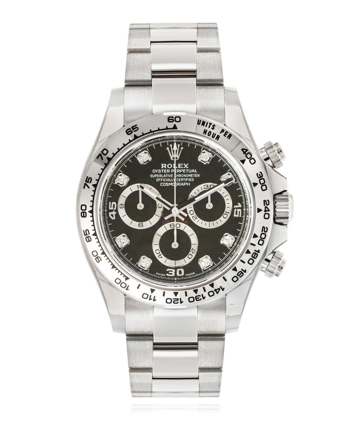 This Rolex Daytona 116509 has a black diamond dial and a bracelet strap. This Rolex has undergone a thorough inspection of water resistance, accuracy, functionality and condition to determine the level of reconditioning required to meet our strict standards. It has also been referenced against technical documents and manufacturer records where available to ensure authenticity and a clean history. Our watches have a 24-month warranty for your peace of mind, in conjunction with any remaining manufacturer’s warranty from new or from service. To maintain the manufacturer’s warranty on this watch, it has not been polished in our service centre.