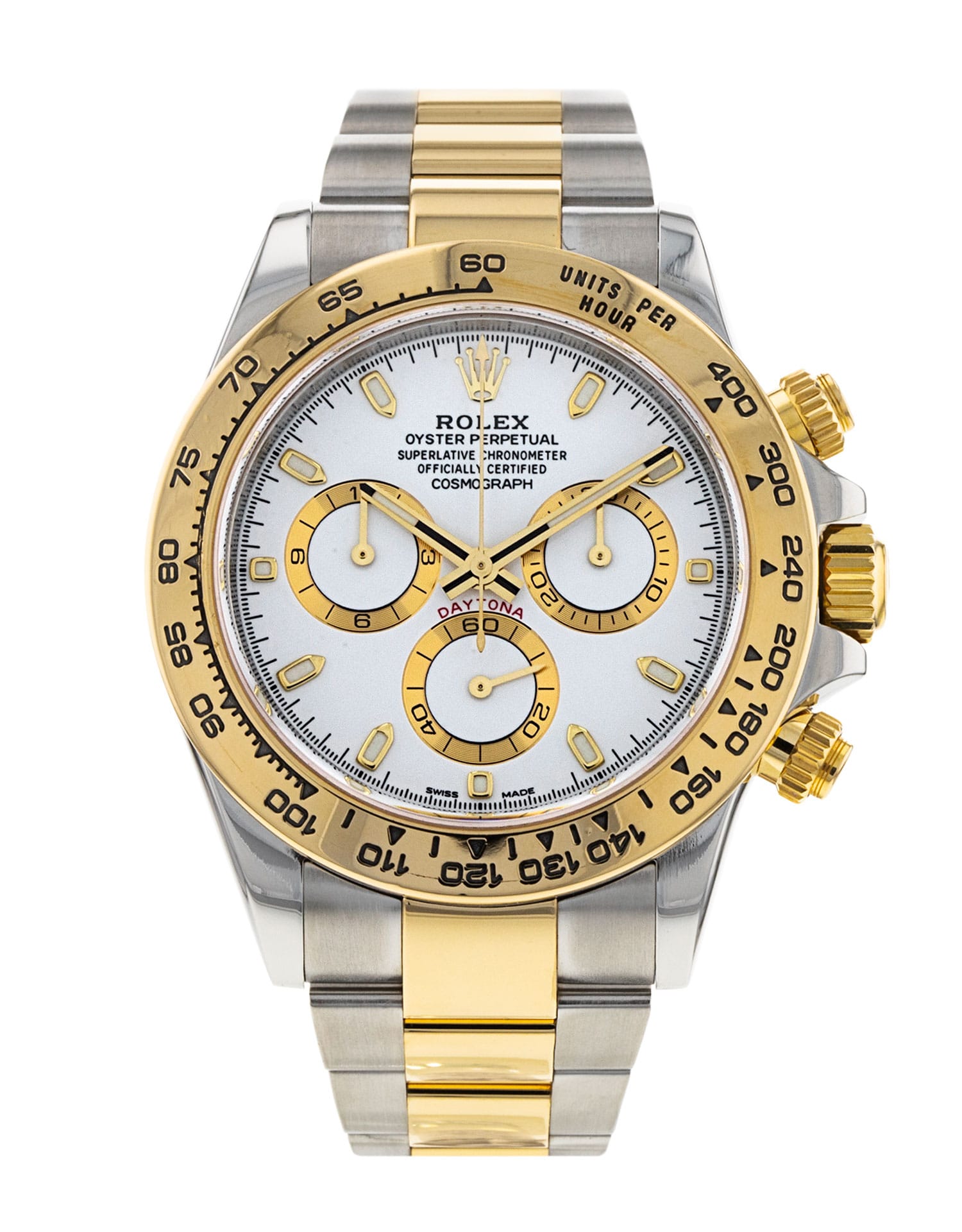 This Rolex Daytona 116523 has a white baton dial and a bracelet strap. This Rolex has undergone a thorough inspection of water resistance, accuracy, functionality and condition to determine the level of reconditioning required to meet our strict standards. It has also been referenced against technical documents and manufacturer records where available to ensure authenticity and a clean history. All our watches have a 24-month warranty for your peace of mind. One of our skilled polishing technicians has removed marks on the case and bracelet of this watch, brought about by daily wear and tear, which is why this watch does not come with the remaining manufacturer’s warranty.