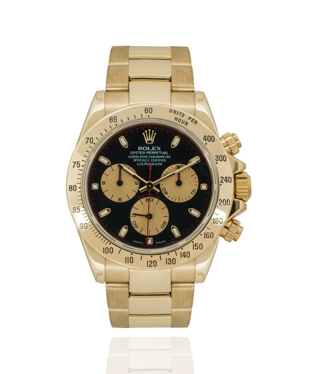 This Rolex Daytona 116528 has a black baton dial and a bracelet strap. This Rolex has undergone a thorough inspection of water resistance, accuracy, functionality and condition to determine the level of reconditioning required to meet our strict standards. It has also been referenced against technical documents and manufacturer records where available to ensure authenticity and a clean history. All our watches have a 24-month warranty for your peace of mind. One of our skilled polishing technicians has removed marks on the case and bracelet of this watch, brought about by daily wear and tear, which is why this watch does not come with the remaining manufacturer’s warranty.