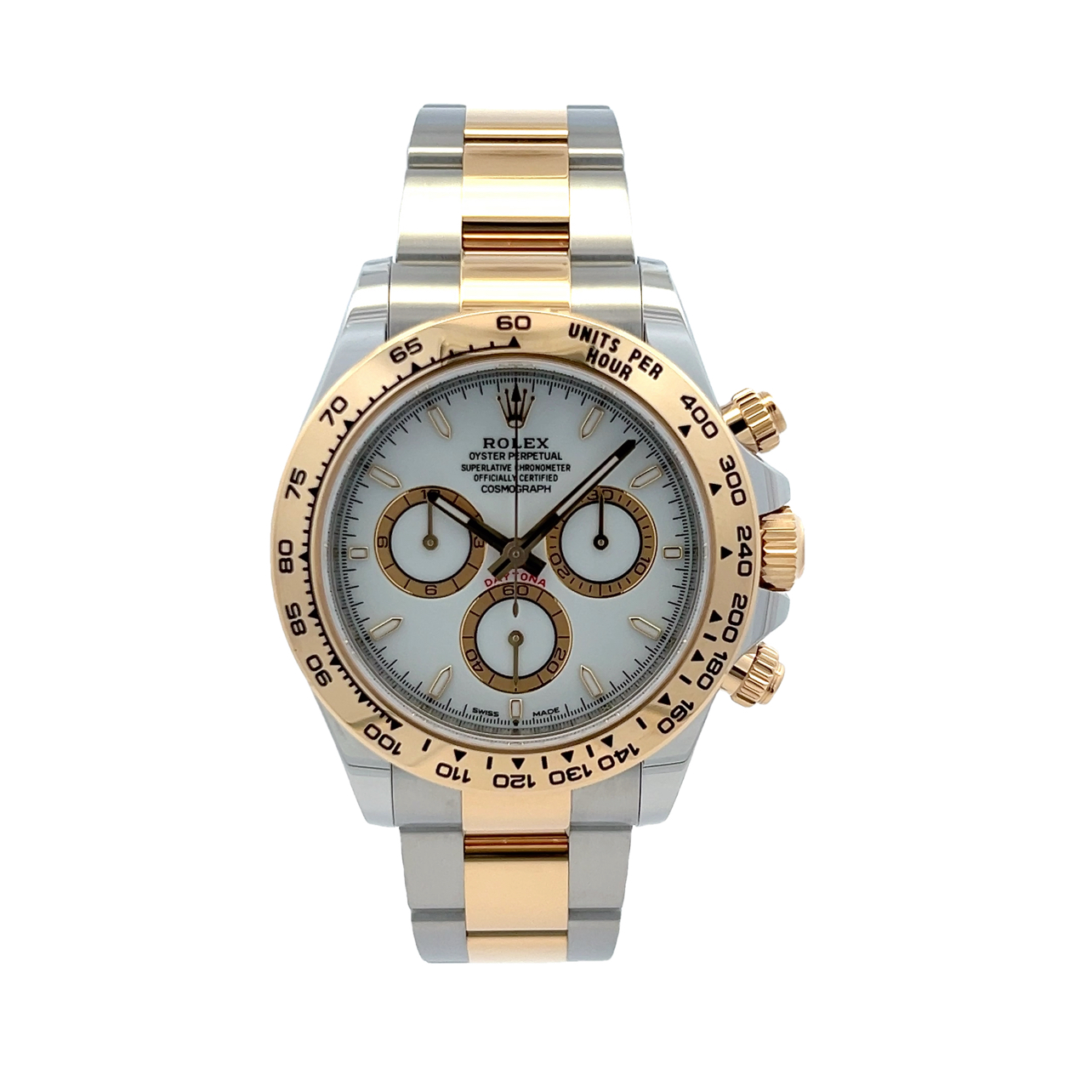 This Rolex Daytona 126503 has a white dial and a bracelet strap. This Rolex has undergone a thorough inspection of water resistance, accuracy, functionality and condition to determine the level of reconditioning required to meet our strict standards. It has also been referenced against technical documents and manufacturer records where available to ensure authenticity and a clean history. Our watches have a 24-month warranty for your peace of mind, in conjunction with any remaining manufacturer’s warranty from new or from service. To maintain the manufacturer’s warranty on this watch, it has not been polished in our service centre.