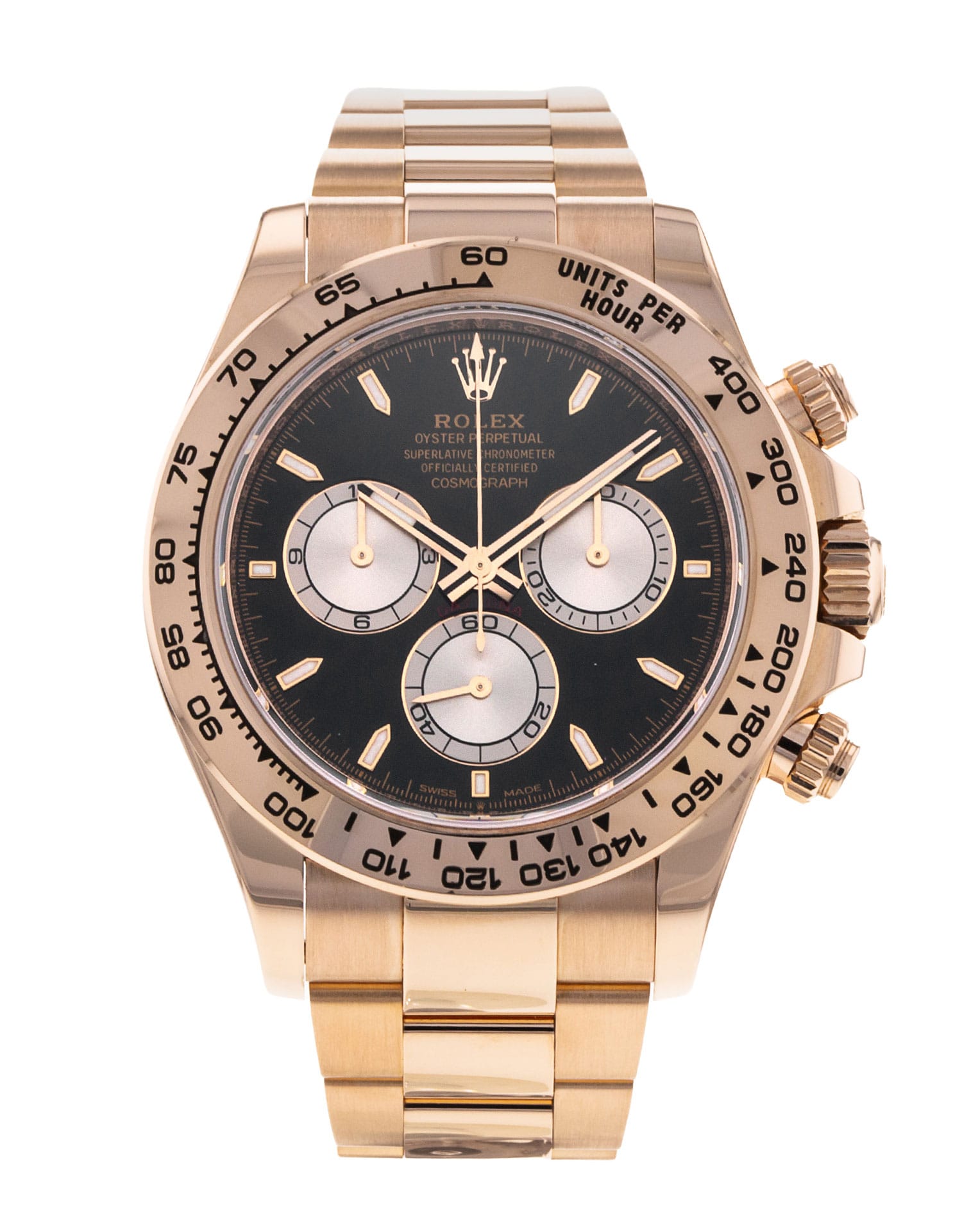 This Rolex Daytona 126505 has a black dial and a bracelet strap. This Rolex has undergone a thorough inspection of water resistance, accuracy, functionality and condition to determine the level of reconditioning required to meet our strict standards. It has also been referenced against technical documents and manufacturer records where available to ensure authenticity and a clean history. All our watches have a 24-month warranty for your peace of mind. One of our skilled polishing technicians has removed marks on the case and bracelet of this watch, brought about by daily wear and tear, which is why this watch does not come with the remaining manufacturer’s warranty.