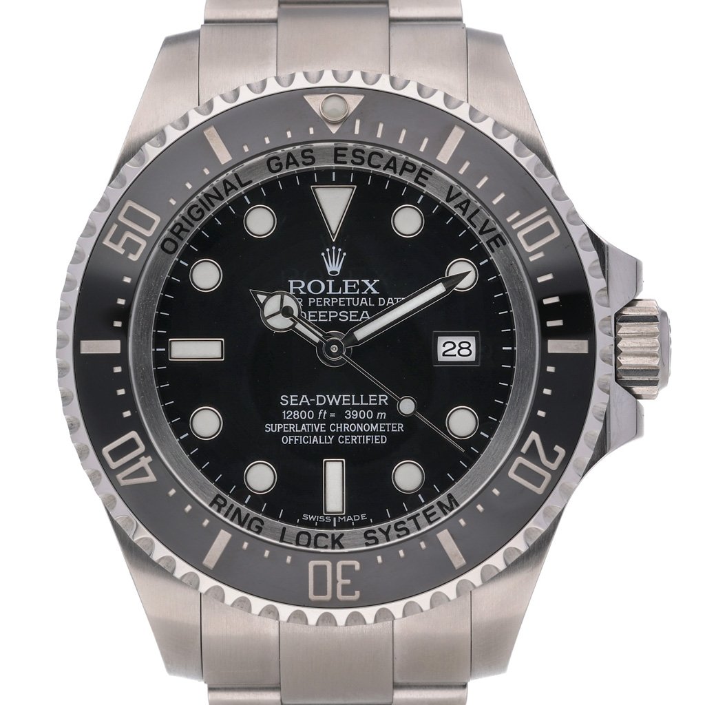 This Rolex Deepsea 116660 has a black dial and a bracelet strap. This Rolex has undergone a thorough inspection of water resistance, accuracy, functionality and condition to determine the level of reconditioning required to meet our strict standards. It has also been referenced against technical documents and manufacturer records where available to ensure authenticity and a clean history. All our watches have a 24-month warranty for your peace of mind. One of our skilled polishing technicians has removed marks on the case and bracelet of this watch, brought about by daily wear and tear, which is why this watch does not come with the remaining manufacturer’s warranty.