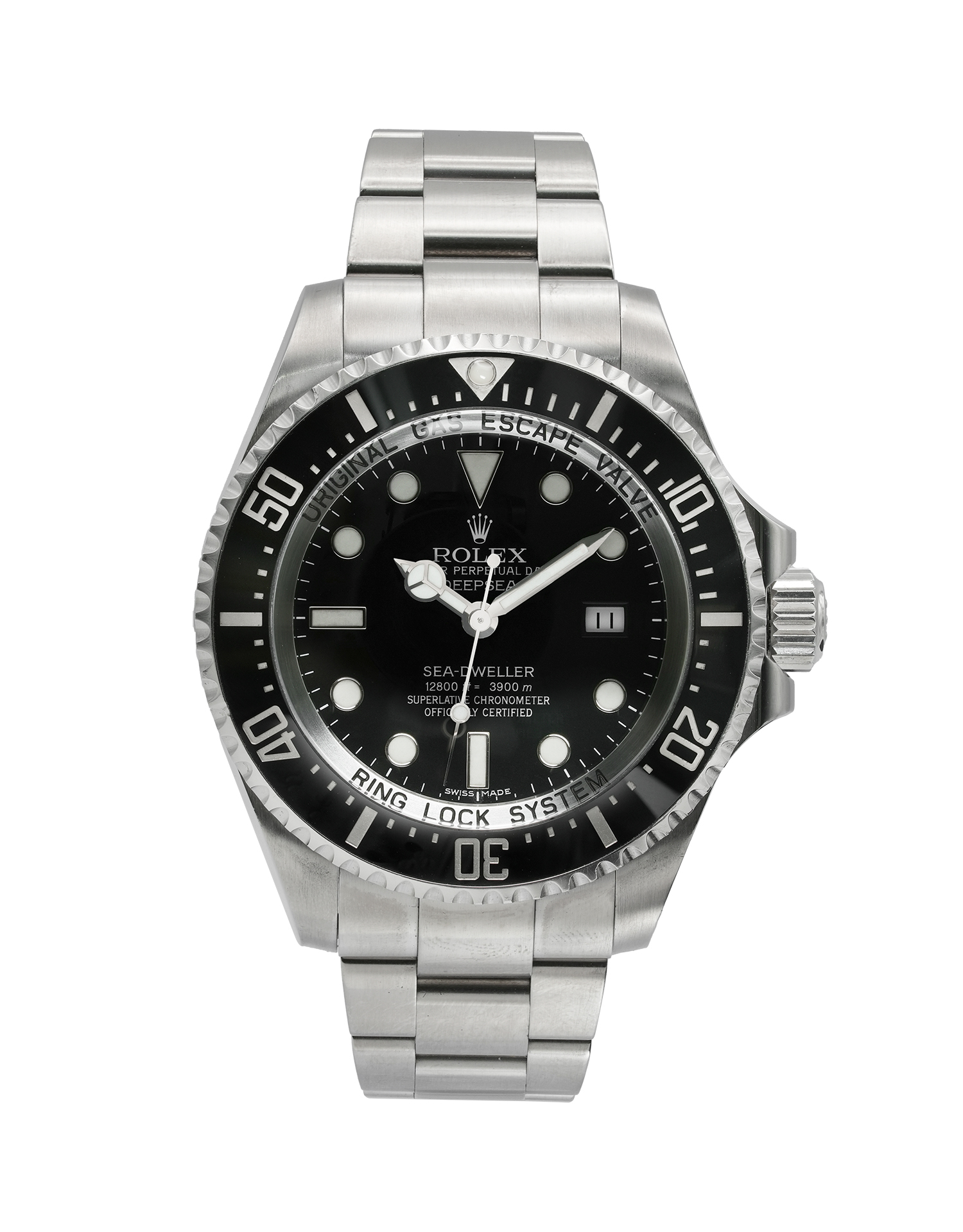 This Rolex Deepsea 116660 has a black dial and a bracelet strap. This Rolex has undergone a thorough inspection of water resistance, accuracy, functionality and condition to determine the level of reconditioning required to meet our strict standards. It has also been referenced against technical documents and manufacturer records where available to ensure authenticity and a clean history. All our watches have a 24-month warranty for your peace of mind. One of our skilled polishing technicians has removed marks on the case and bracelet of this watch, brought about by daily wear and tear, which is why this watch does not come with the remaining manufacturer’s warranty.