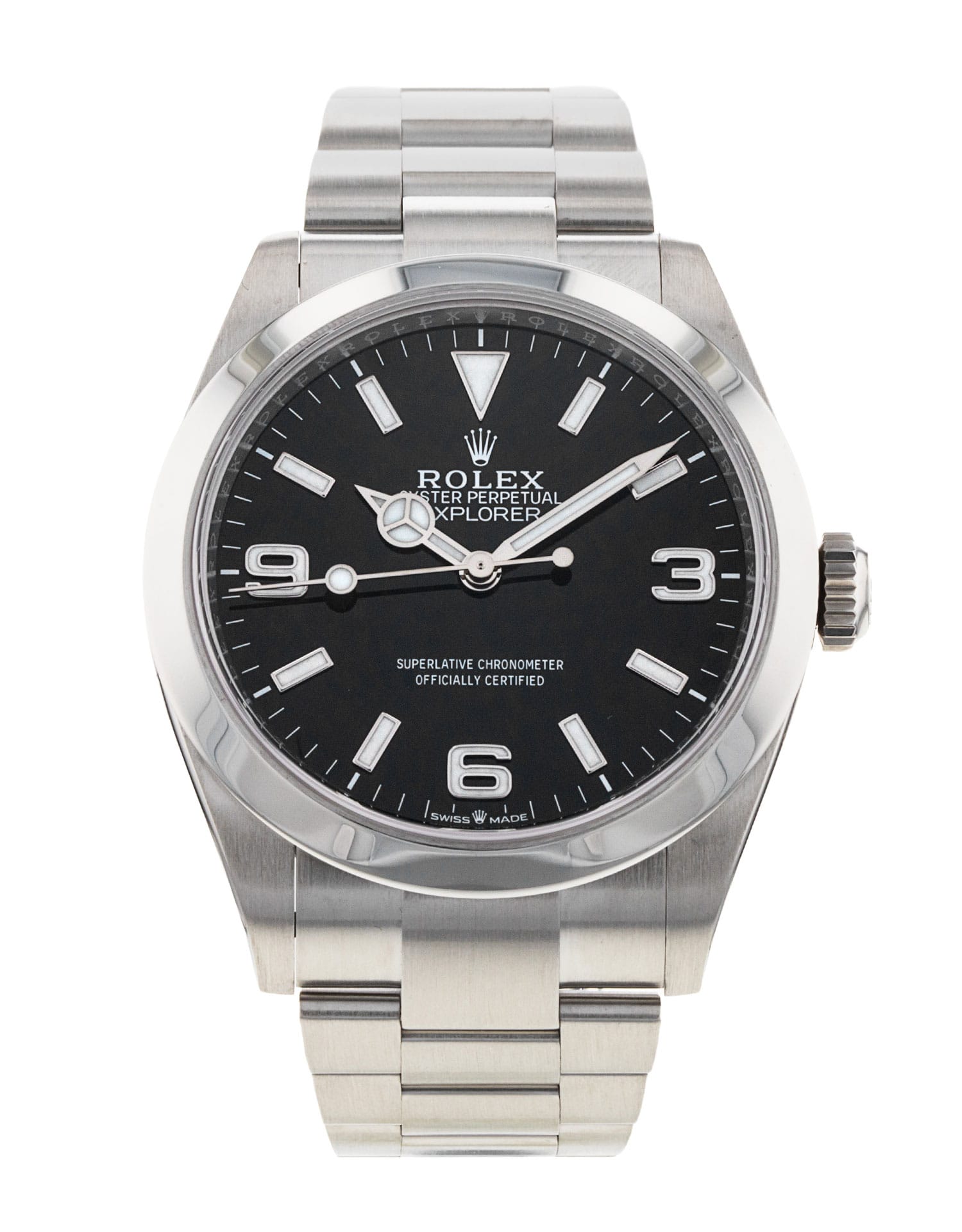 This Rolex Explorer 40 224270 has a black quarter arabic dial and a bracelet strap. This Rolex has undergone a thorough inspection of water resistance, accuracy, functionality and condition to determine the level of reconditioning required to meet our strict standards. It has also been referenced against technical documents and manufacturer records where available to ensure authenticity and a clean history. All our watches have a 24-month warranty for your peace of mind. One of our skilled polishing technicians has removed marks on the case and bracelet of this watch, brought about by daily wear and tear, which is why this watch does not come with the remaining manufacturer’s warranty.