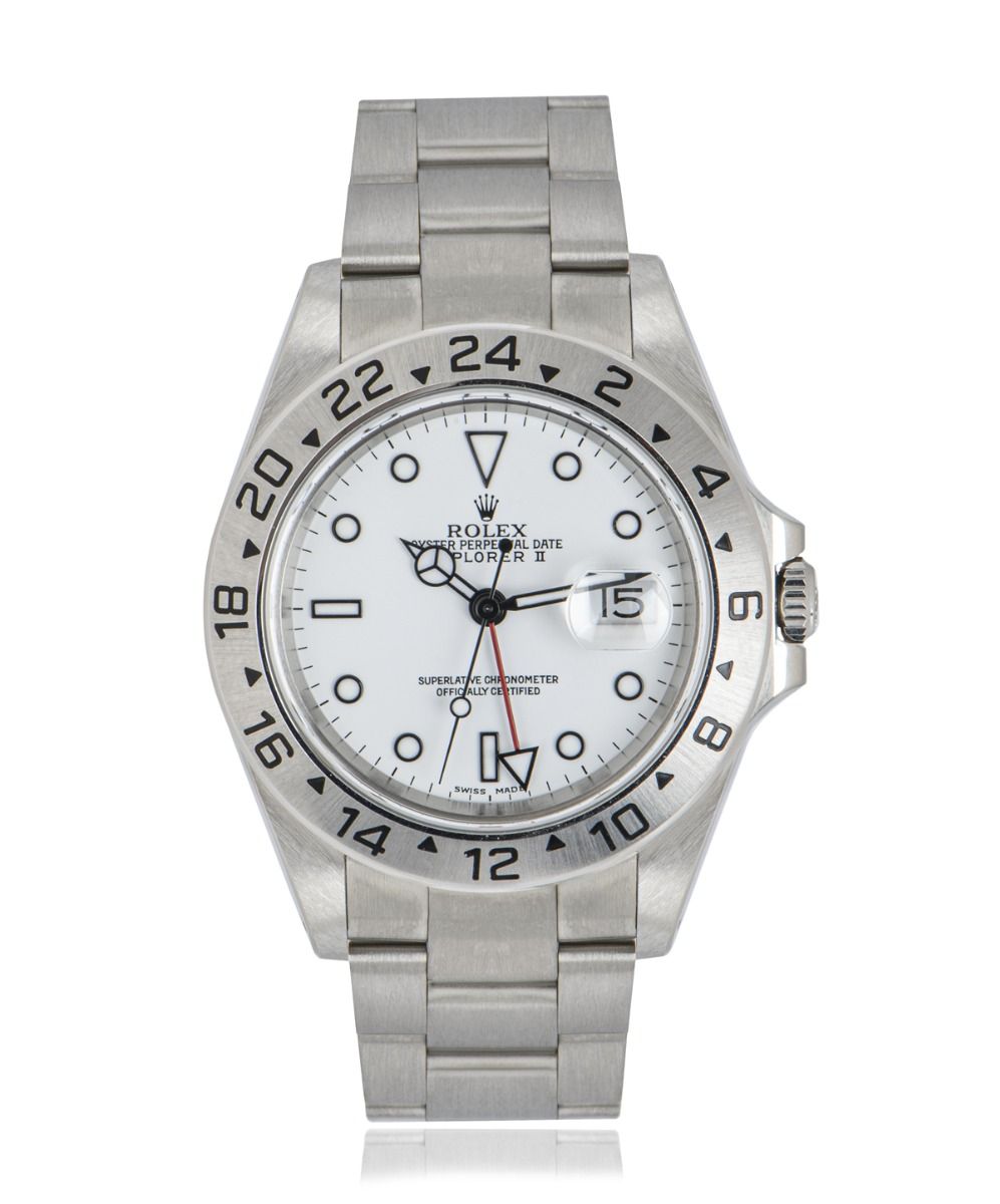 This Rolex Explorer II 16570 has a white dial and a bracelet strap. This Rolex has undergone a thorough inspection of water resistance, accuracy, functionality and condition to determine the level of reconditioning required to meet our strict standards. It has also been referenced against technical documents and manufacturer records where available to ensure authenticity and a clean history. All our watches have a 24-month warranty for your peace of mind. One of our skilled polishing technicians has removed marks on the case and bracelet of this watch, brought about by daily wear and tear, which is why this watch does not come with the remaining manufacturer’s warranty.