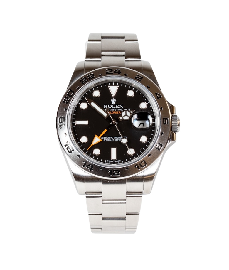 This Rolex Explorer II 216570 has a black dial and a bracelet strap. This Rolex has undergone a thorough inspection of water resistance, accuracy, functionality and condition to determine the level of reconditioning required to meet our strict standards. It has also been referenced against technical documents and manufacturer records where available to ensure authenticity and a clean history. All our watches have a 24-month warranty for your peace of mind. One of our skilled polishing technicians has removed marks on the case and bracelet of this watch, brought about by daily wear and tear, which is why this watch does not come with the remaining manufacturer’s warranty.