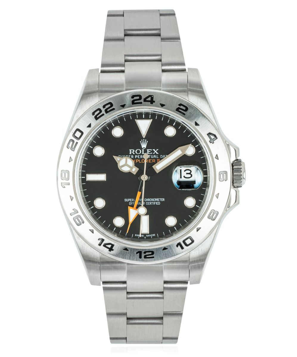 This Rolex Explorer II 216570 has a black dial and a bracelet strap. This Rolex has undergone a thorough inspection of water resistance, accuracy, functionality and condition to determine the level of reconditioning required to meet our strict standards. It has also been referenced against technical documents and manufacturer records where available to ensure authenticity and a clean history. All our watches have a 24-month warranty for your peace of mind. One of our skilled polishing technicians has removed marks on the case and bracelet of this watch, brought about by daily wear and tear, which is why this watch does not come with the remaining manufacturer’s warranty.