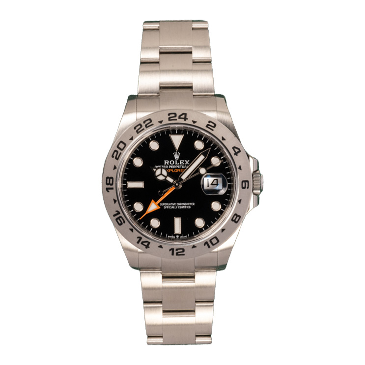 This Rolex Explorer II 226570 has a black dial and a bracelet strap. This Rolex has undergone a thorough inspection of water resistance, accuracy, functionality and condition to determine the level of reconditioning required to meet our strict standards. It has also been referenced against technical documents and manufacturer records where available to ensure authenticity and a clean history. Our watches have a 24-month warranty for your peace of mind, in conjunction with any remaining manufacturer’s warranty from new or from service. To maintain the manufacturer’s warranty on this watch, it has not been polished in our service centre.
