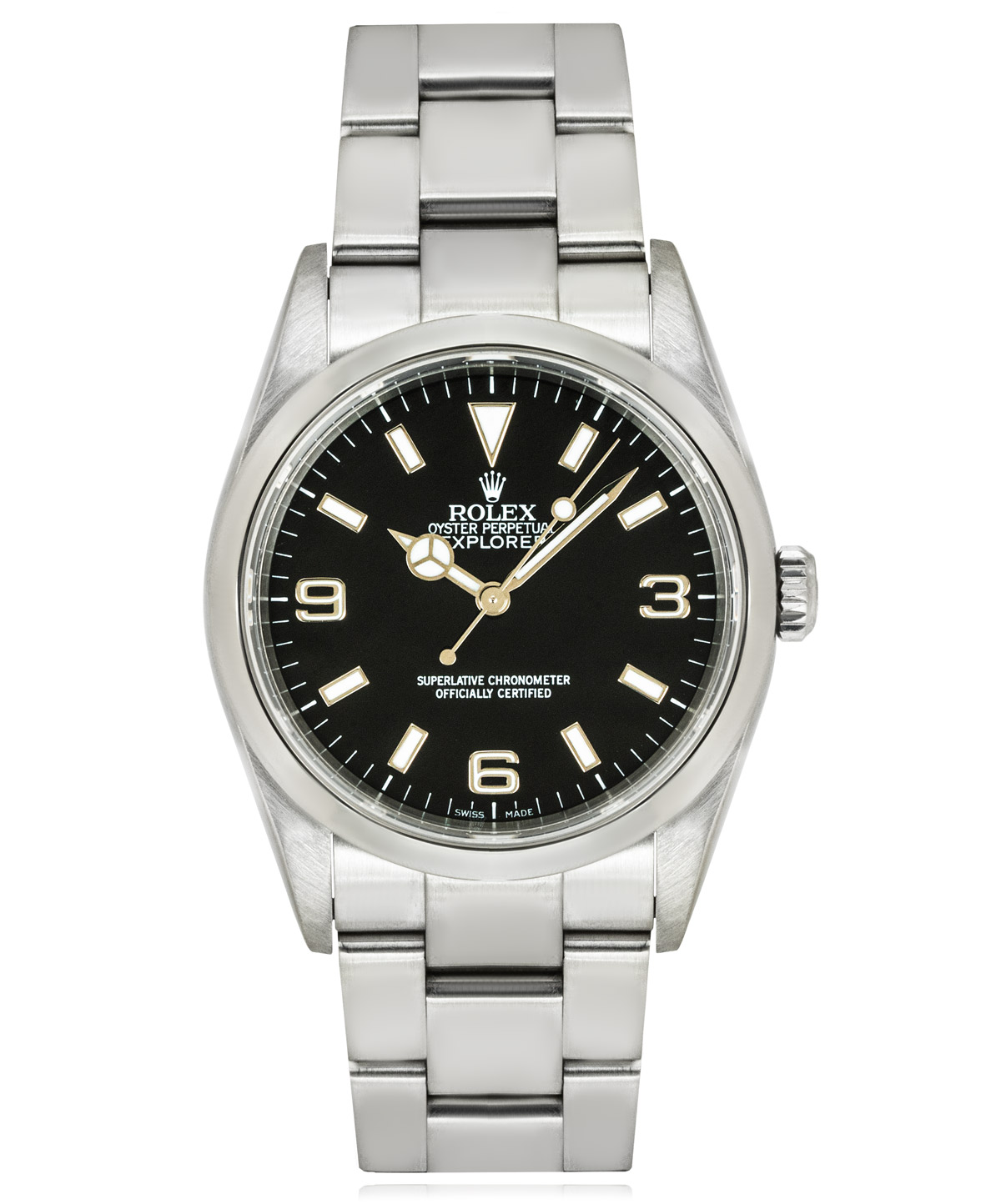 This Rolex Explorer 114270 has a black quarter arabic dial and a bracelet strap. This Rolex has undergone a thorough inspection of water resistance, accuracy, functionality and condition to determine the level of reconditioning required to meet our strict standards. It has also been referenced against technical documents and manufacturer records where available to ensure authenticity and a clean history. All our watches have a 24-month warranty for your peace of mind. One of our skilled polishing technicians has removed marks on the case and bracelet of this watch, brought about by daily wear and tear, which is why this watch does not come with the remaining manufacturer’s warranty.
