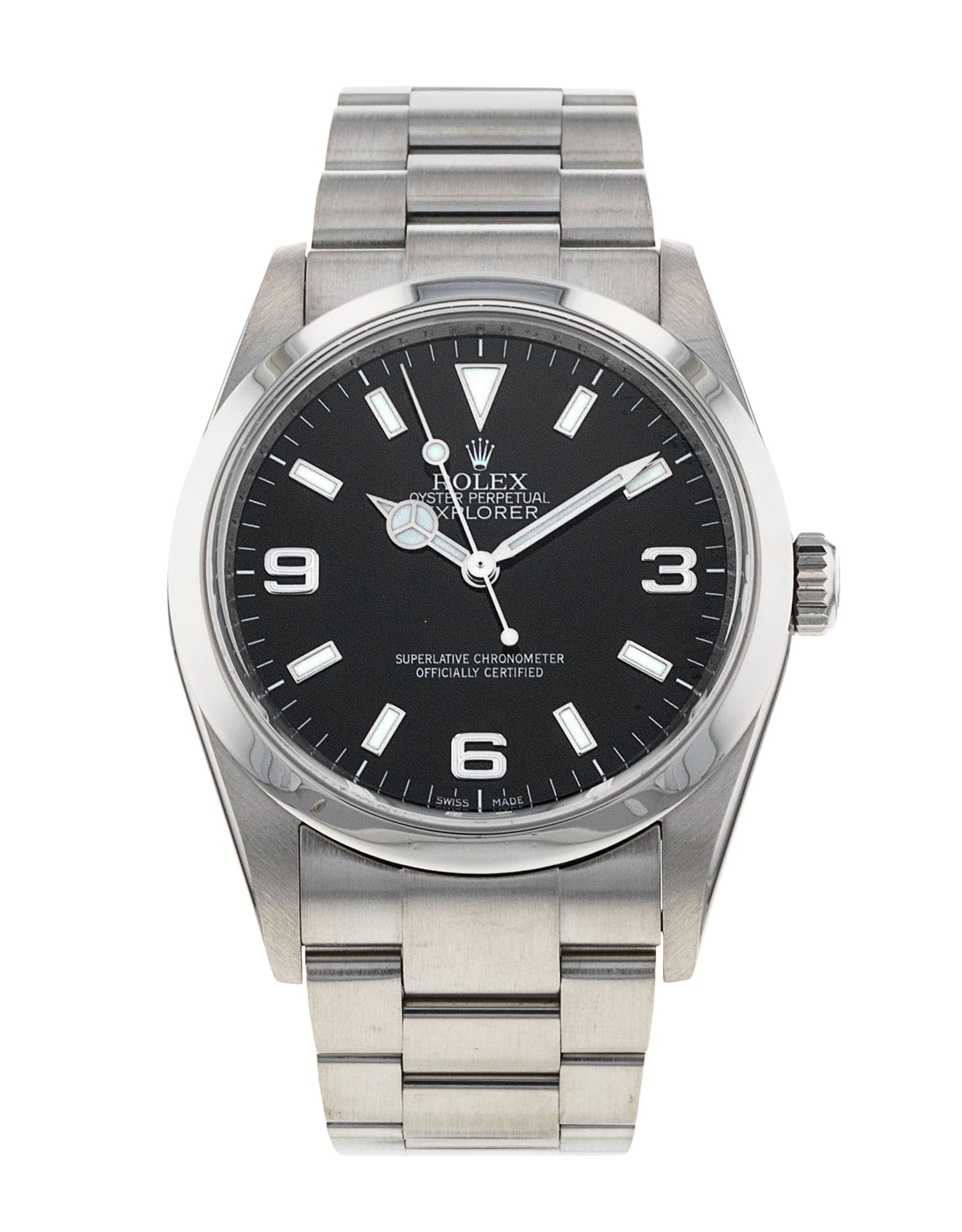 This Rolex Explorer 114270 has a black quarter arabic dial and a bracelet strap. This Rolex has undergone a thorough inspection of water resistance, accuracy, functionality and condition to determine the level of reconditioning required to meet our strict standards. It has also been referenced against technical documents and manufacturer records where available to ensure authenticity and a clean history. All our watches have a 24-month warranty for your peace of mind. One of our skilled polishing technicians has removed marks on the case and bracelet of this watch, brought about by daily wear and tear, which is why this watch does not come with the remaining manufacturer’s warranty.