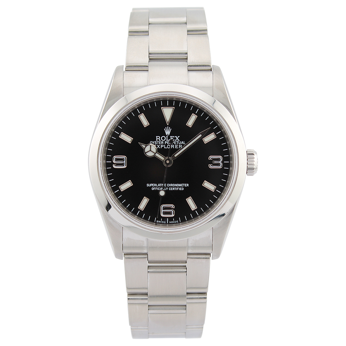 This Rolex Explorer 114270 has a black quarter arabic dial and a bracelet strap. This Rolex has undergone a thorough inspection of water resistance, accuracy, functionality and condition to determine the level of reconditioning required to meet our strict standards. It has also been referenced against technical documents and manufacturer records where available to ensure authenticity and a clean history. All our watches have a 24-month warranty for your peace of mind. One of our skilled polishing technicians has removed marks on the case and bracelet of this watch, brought about by daily wear and tear, which is why this watch does not come with the remaining manufacturer’s warranty.