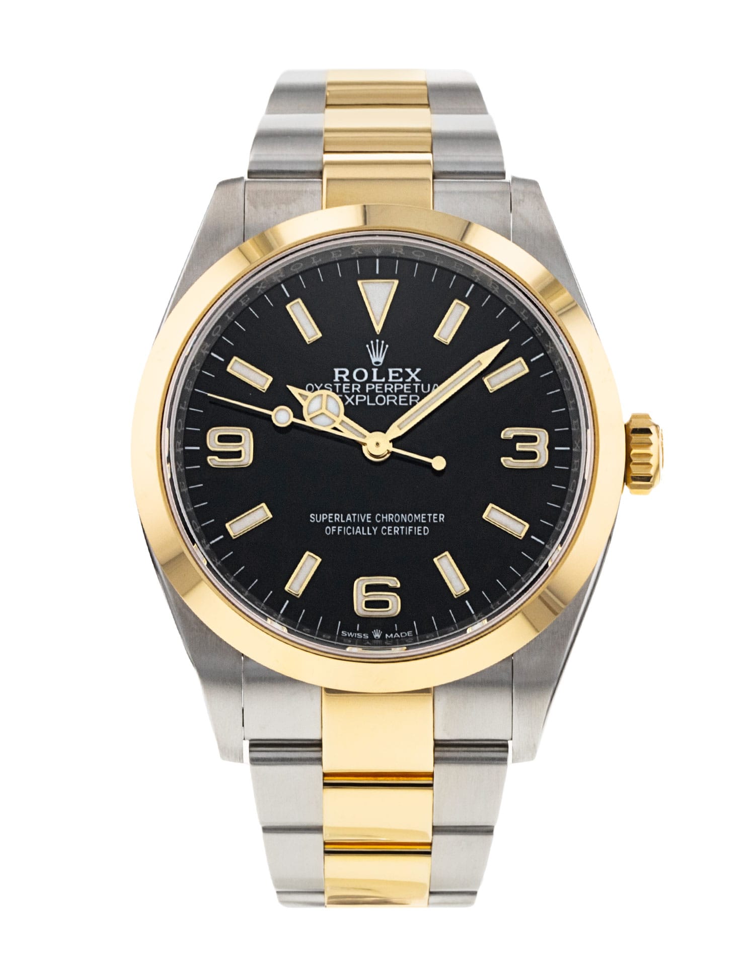 When Edmund Hillary and Tenzing Norgay became the first people to reach the summit of Everest in 1953, their expedition team were supplied with watches by Rolex and the British company Smith’s. Rolex designed a watch specifically for the expedition, which came to be known as the Explorer, one of the less prominent models in the Rolex stable but one that has been a constant since its launch. A far plainer looking watch back then, the Explorer aesthetic is now characterised by the Mercedes hour hand, three-quarter numeral black dial and Oyster bracelet. This model, with a 36mm case, is the first to come in two-tone steel and yellow gold and runs on a Caliber 3230 which holds a power reserve of almost 70 hours.