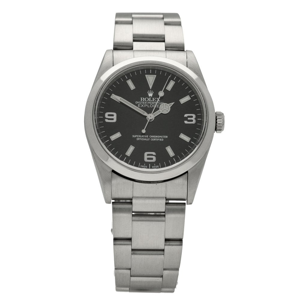 This Rolex Explorer 14270 has a black quarter arabic dial and a bracelet strap. This Rolex has undergone a thorough inspection of water resistance, accuracy, functionality and condition to determine the level of reconditioning required to meet our strict standards. It has also been referenced against technical documents and manufacturer records where available to ensure authenticity and a clean history. All our watches have a 24-month warranty for your peace of mind. One of our skilled polishing technicians has removed marks on the case and bracelet of this watch, brought about by daily wear and tear, which is why this watch does not come with the remaining manufacturer’s warranty.