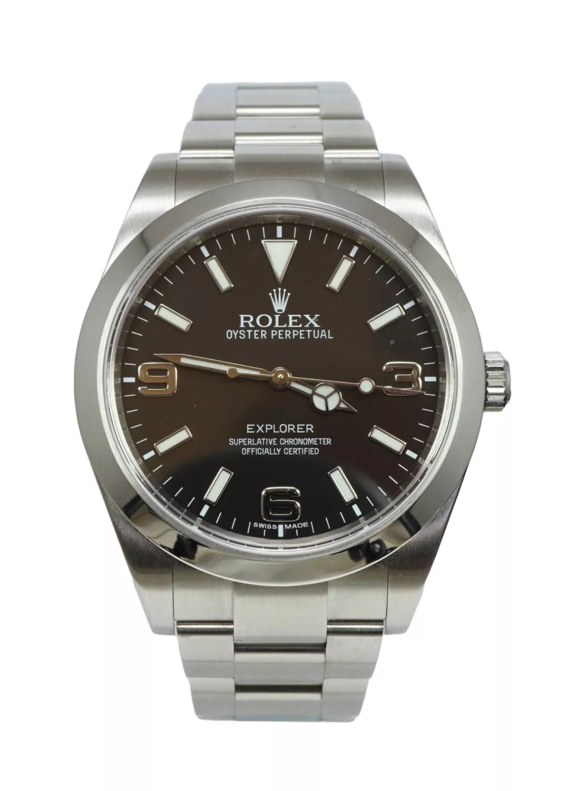 This Rolex Explorer 214270 has a black quarter arabic dial and a bracelet strap. This Rolex has undergone a thorough inspection of water resistance, accuracy, functionality and condition to determine the level of reconditioning required to meet our strict standards. It has also been referenced against technical documents and manufacturer records where available to ensure authenticity and a clean history. All our watches have a 24-month warranty for your peace of mind. One of our skilled polishing technicians has removed marks on the case and bracelet of this watch, brought about by daily wear and tear, which is why this watch does not come with the remaining manufacturer’s warranty.