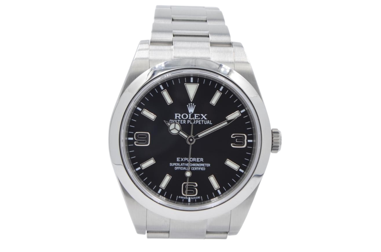 This Rolex Explorer 214270 has a black quarter arabic dial and a bracelet strap. This Rolex has undergone a thorough inspection of water resistance, accuracy, functionality and condition to determine the level of reconditioning required to meet our strict standards. It has also been referenced against technical documents and manufacturer records where available to ensure authenticity and a clean history. All our watches have a 24-month warranty for your peace of mind. One of our skilled polishing technicians has removed marks on the case and bracelet of this watch, brought about by daily wear and tear, which is why this watch does not come with the remaining manufacturer’s warranty.